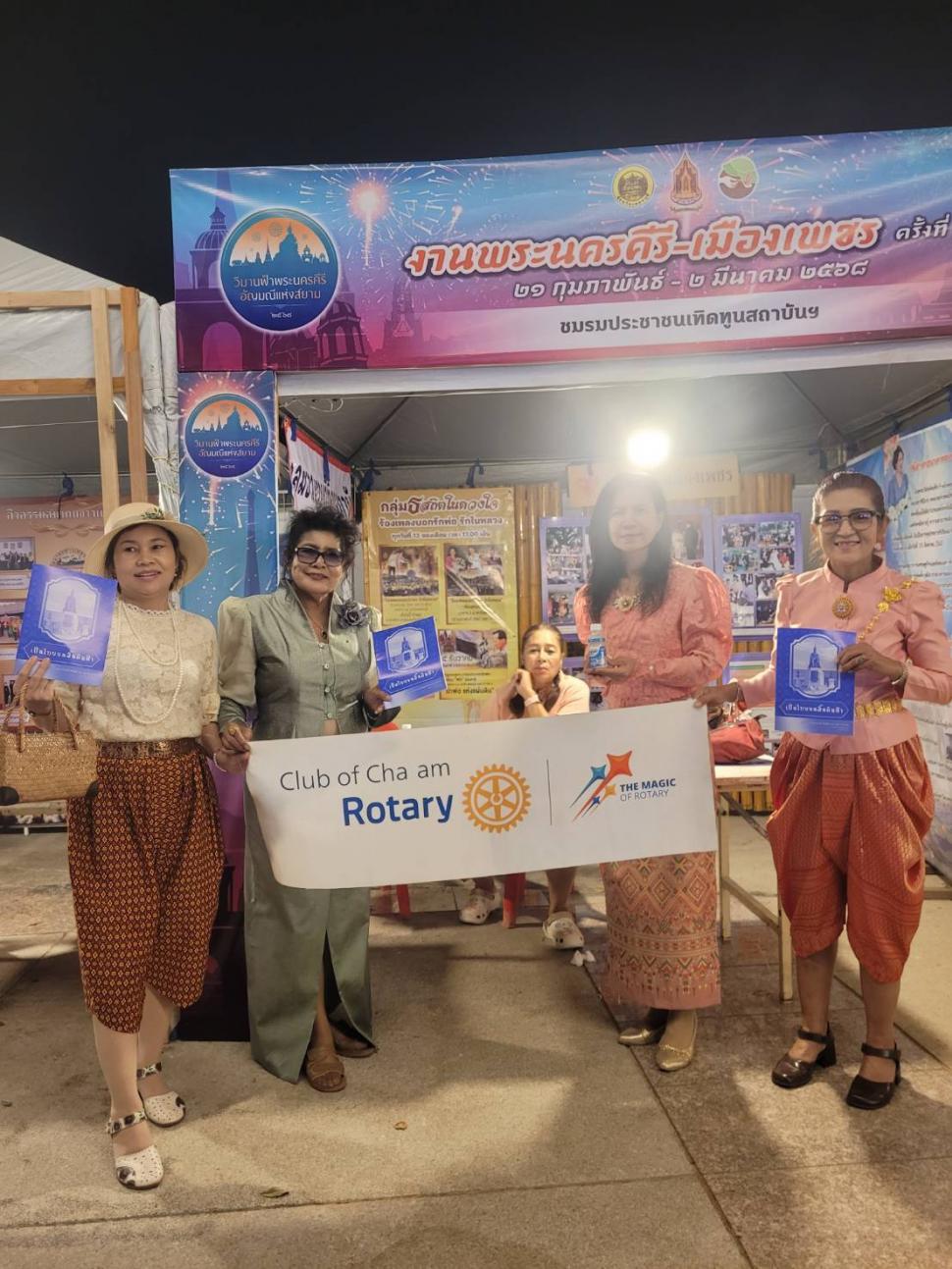 สโมสรโรตารีชะอำ และชุมชนโรตารี RCC CHA AM ร่วมเปิดรบูธนำสินค้าผลิตภัณฑ์แปรรูปมาจำกน่าย ในงานพระนครรีคี เมืองเพชร ครั้งที่ 38 ณ อุทยานประวัติศาสตร์พระนครคีรี 21 ก.พ.-2มี.ค.68 ขอเชิญทุกท่านมาเที่ยวชมงานประจำปีพระนครคีรี(เขาวัง)ในงานประดับไฟสวยงาม