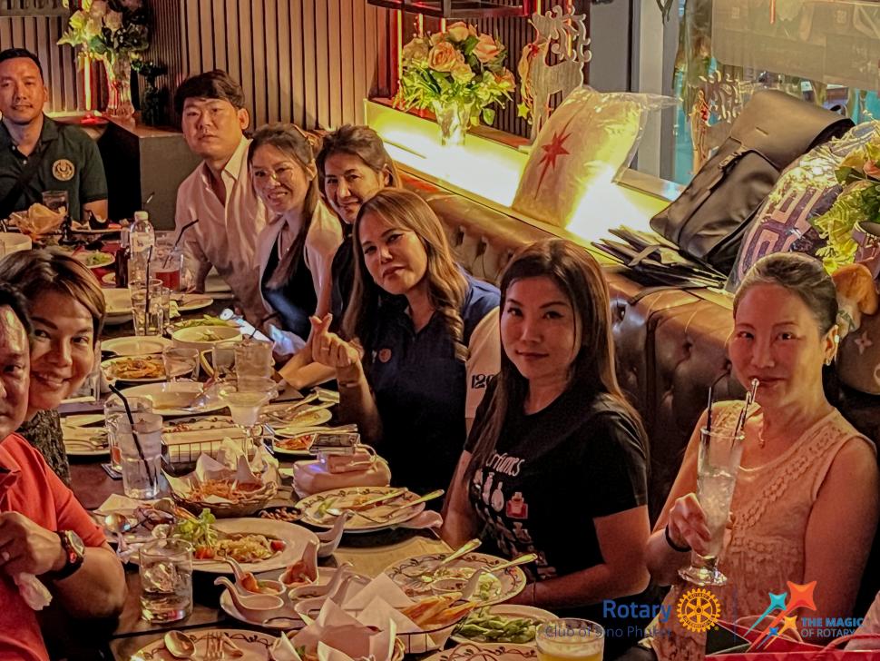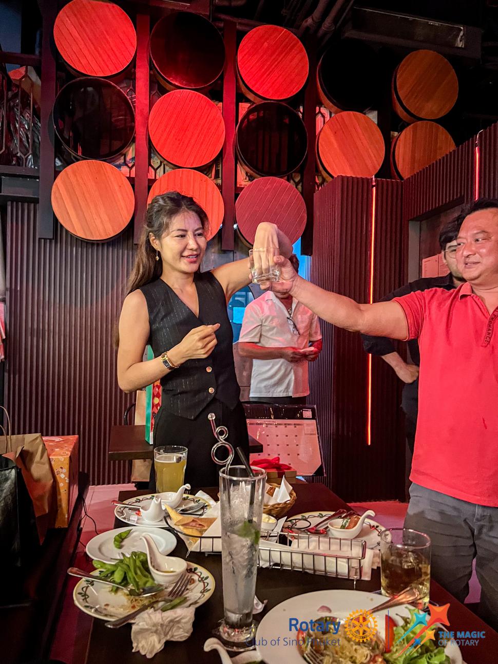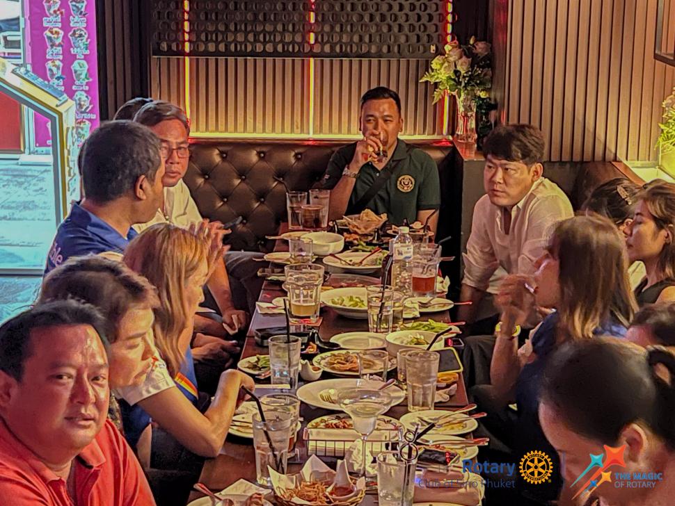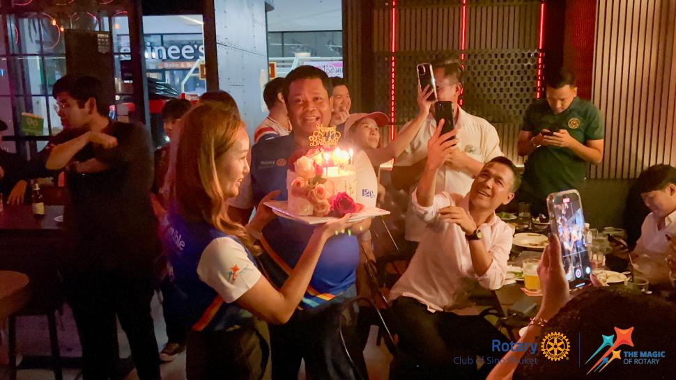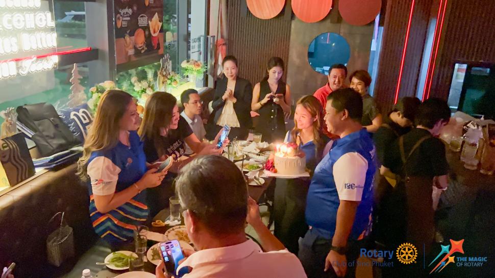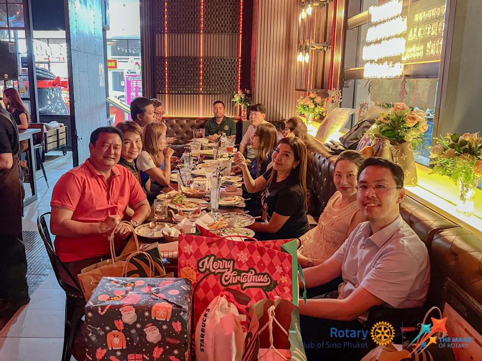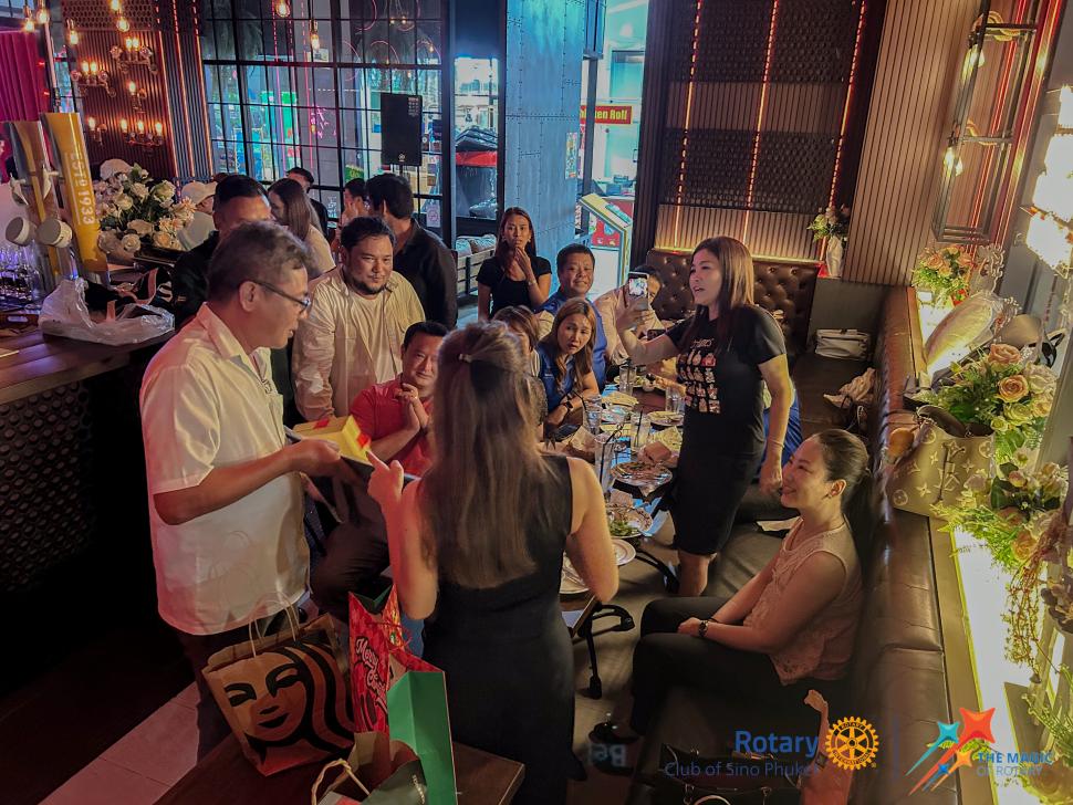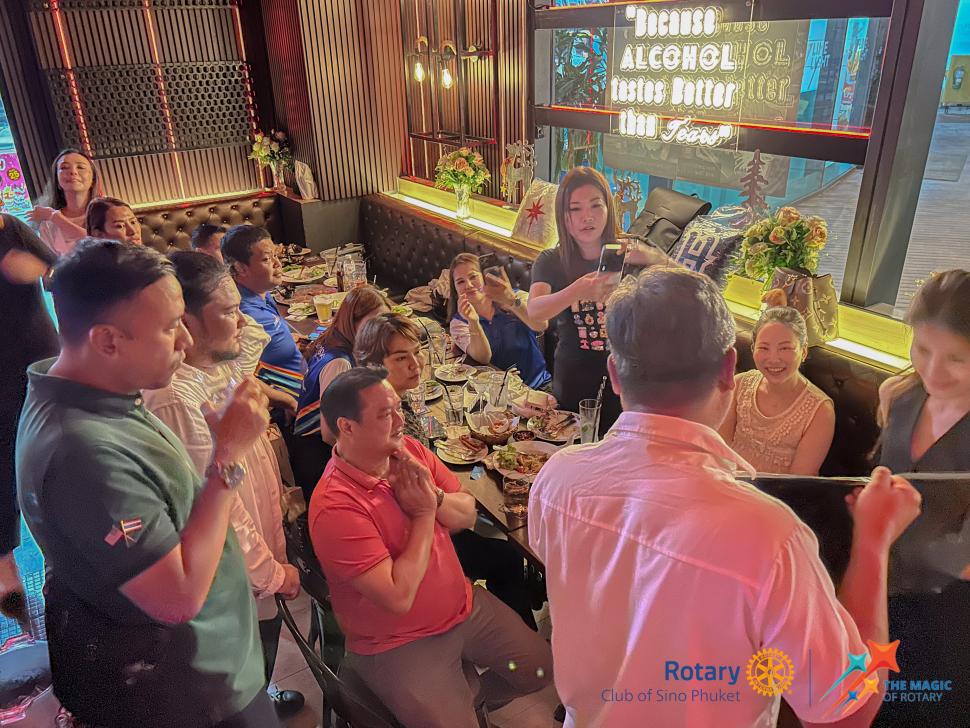 หลังจากเซ็น MOU กับคู่มิตรแล้ว ก็ได้เลี้ยงฉลองปีใหม่ล่วงหน้า ของสโมสรโรตารีชิโนภูเก็ต โดยบรรยากาศเต็มไปด้วยความอบอุ่น และ สนุกสนาน และในวันนี้ก็เป็นวันคล้ายวันเกิด ของโรตารีแอนน์ ของอดีตนายกสุทธิพงษ์ ประทุมด้วยเช่นกัน และได้มีเซอร์ไพร์สเค้กวันเกิด ในวันนี้ด้วย