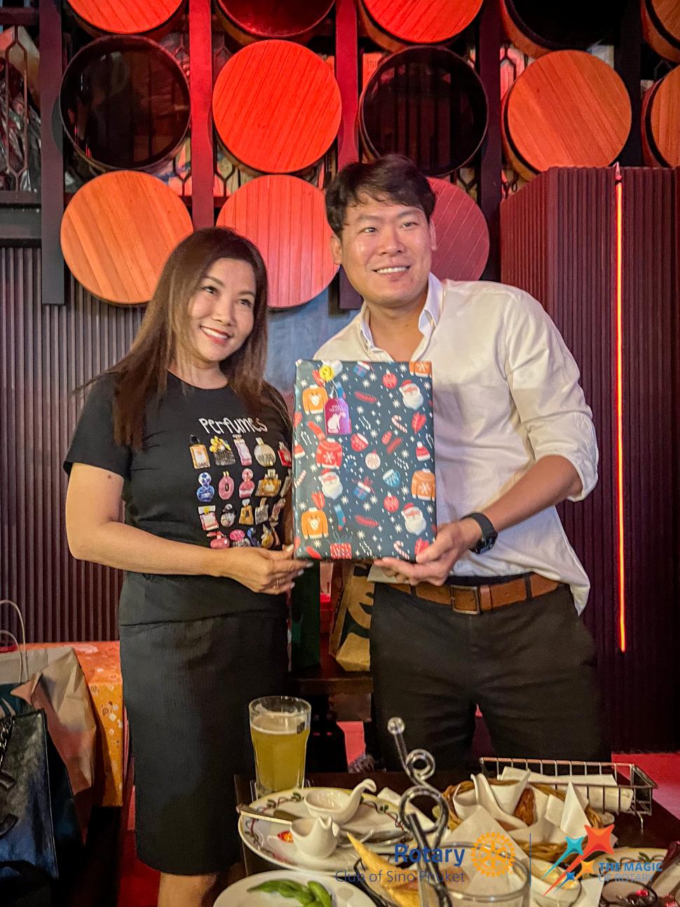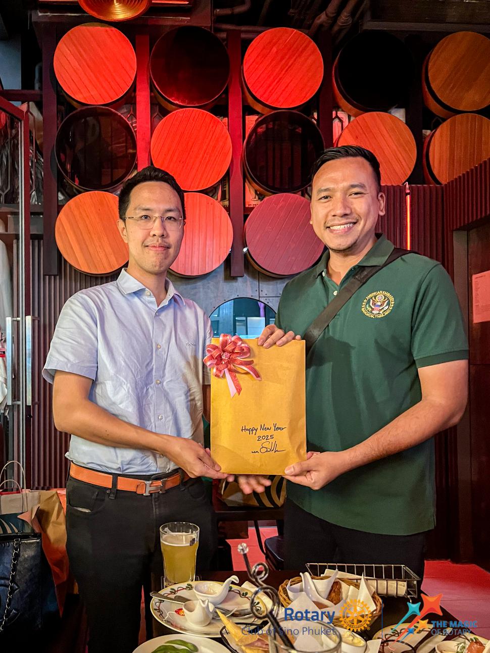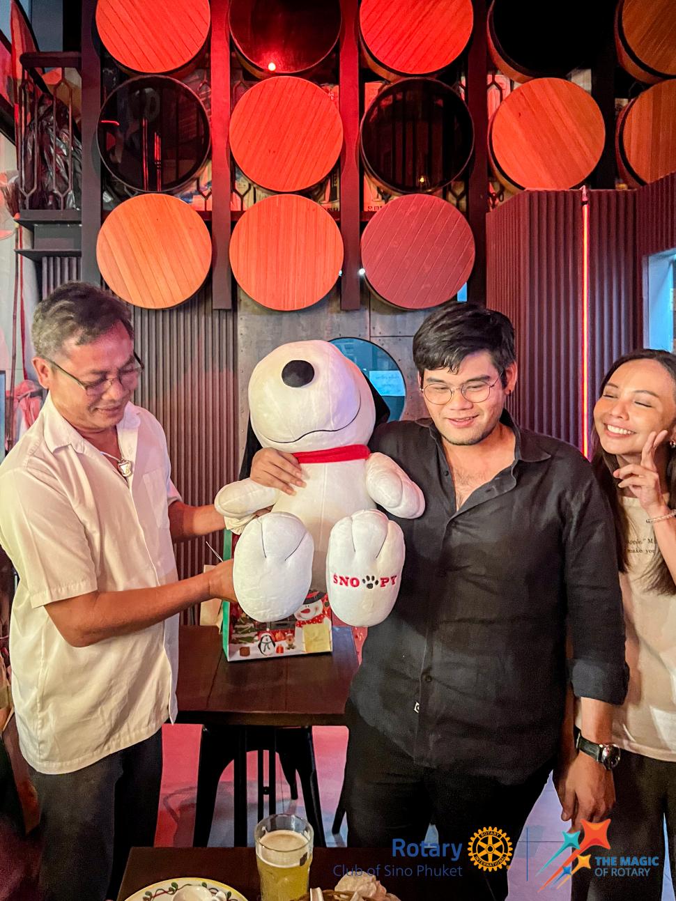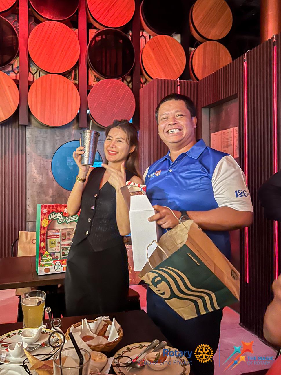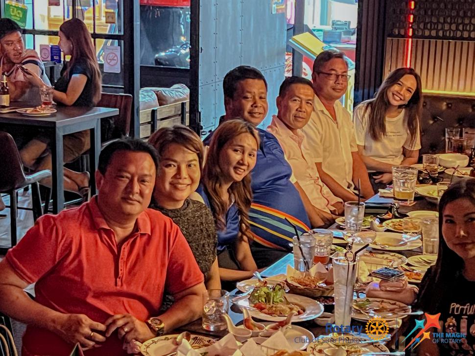 หลังจากเซ็น MOU กับคู่มิตรแล้ว ก็ได้เลี้ยงฉลองปีใหม่ล่วงหน้า ของสโมสรโรตารีชิโนภูเก็ต โดยบรรยากาศเต็มไปด้วยความอบอุ่น และ สนุกสนาน และในวันนี้ก็เป็นวันคล้ายวันเกิด ของโรตารีแอนน์ ของอดีตนายกสุทธิพงษ์ ประทุมด้วยเช่นกัน และได้มีเซอร์ไพร์สเค้กวันเกิด ในวันนี้ด้วย
