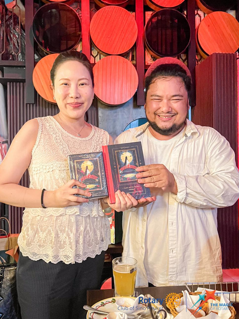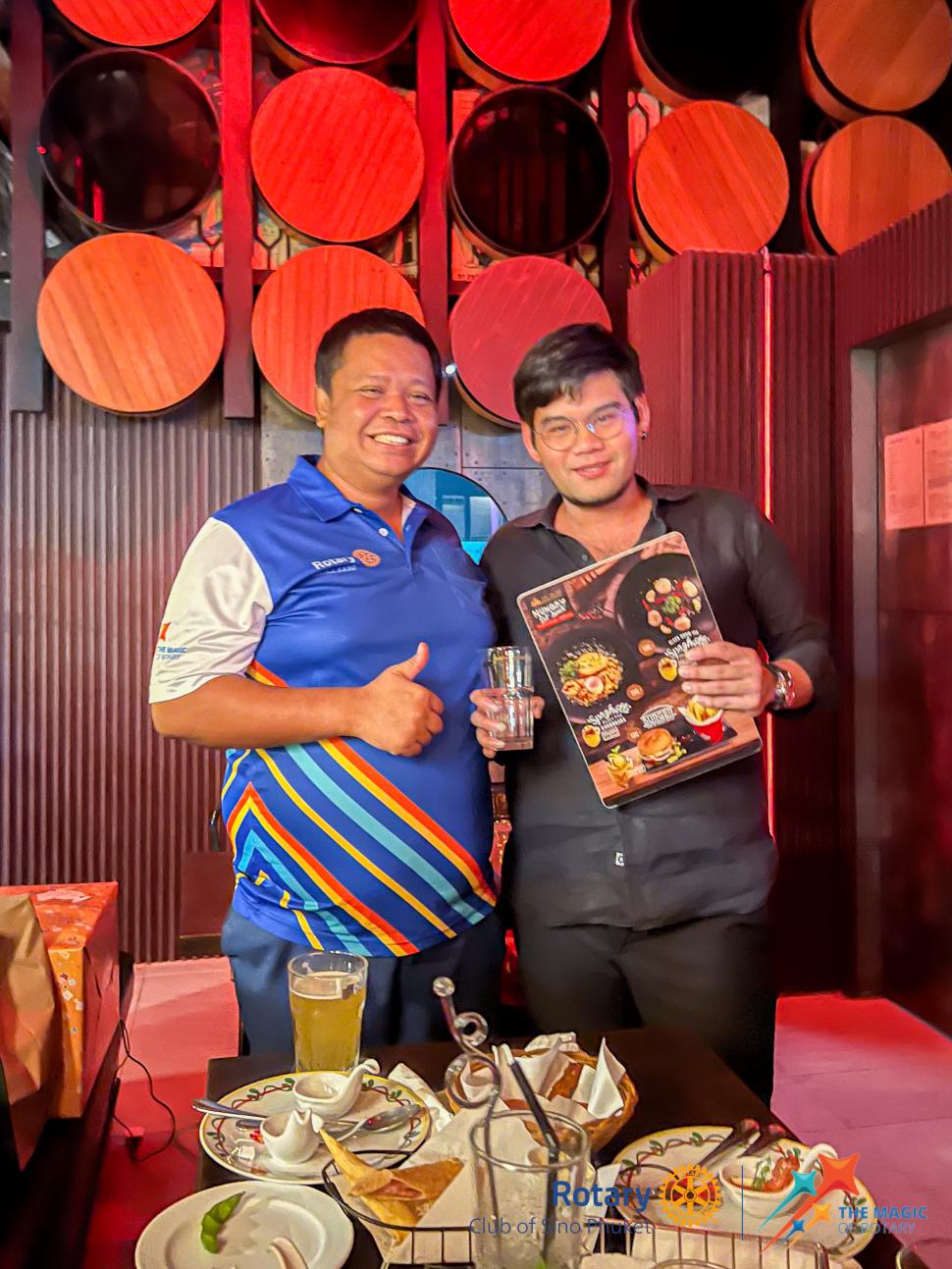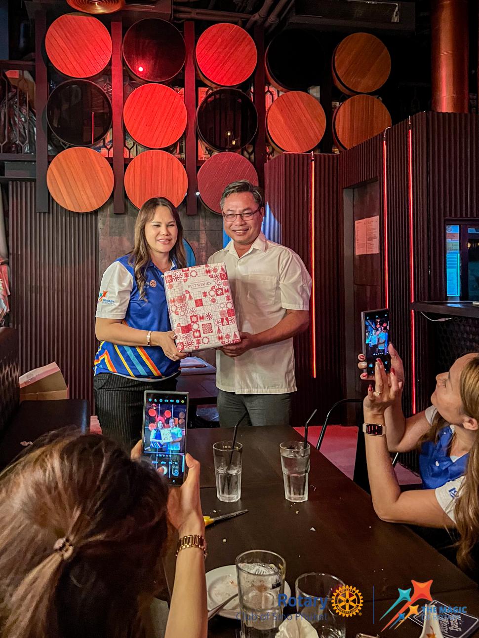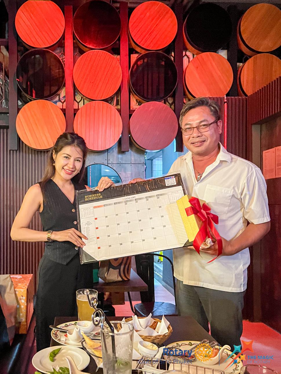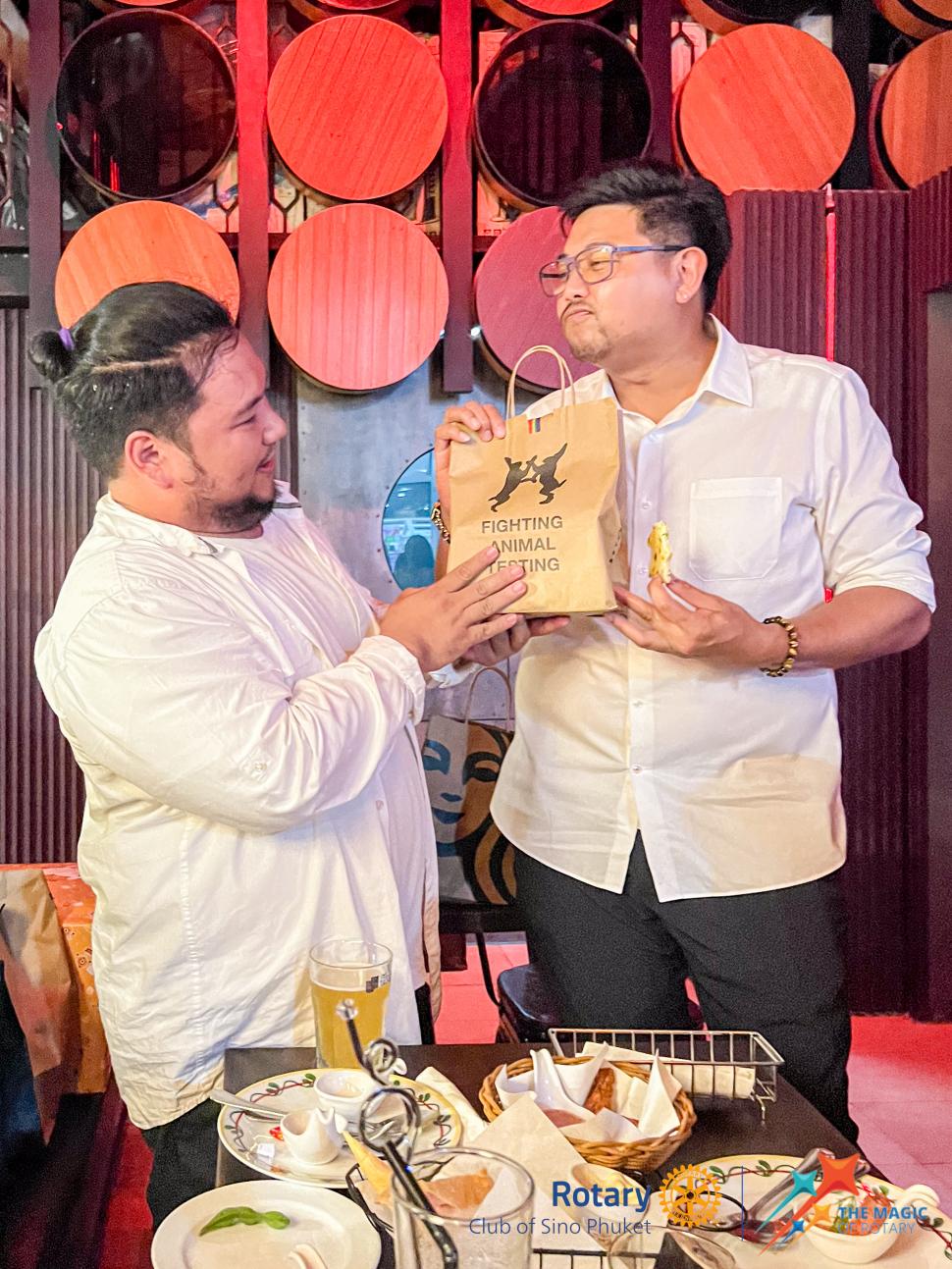 หลังจากเซ็น MOU กับคู่มิตรแล้ว ก็ได้เลี้ยงฉลองปีใหม่ล่วงหน้า ของสโมสรโรตารีชิโนภูเก็ต โดยบรรยากาศเต็มไปด้วยความอบอุ่น และ สนุกสนาน และในวันนี้ก็เป็นวันคล้ายวันเกิด ของโรตารีแอนน์ ของอดีตนายกสุทธิพงษ์ ประทุมด้วยเช่นกัน และได้มีเซอร์ไพร์สเค้กวันเกิด ในวันนี้ด้วย