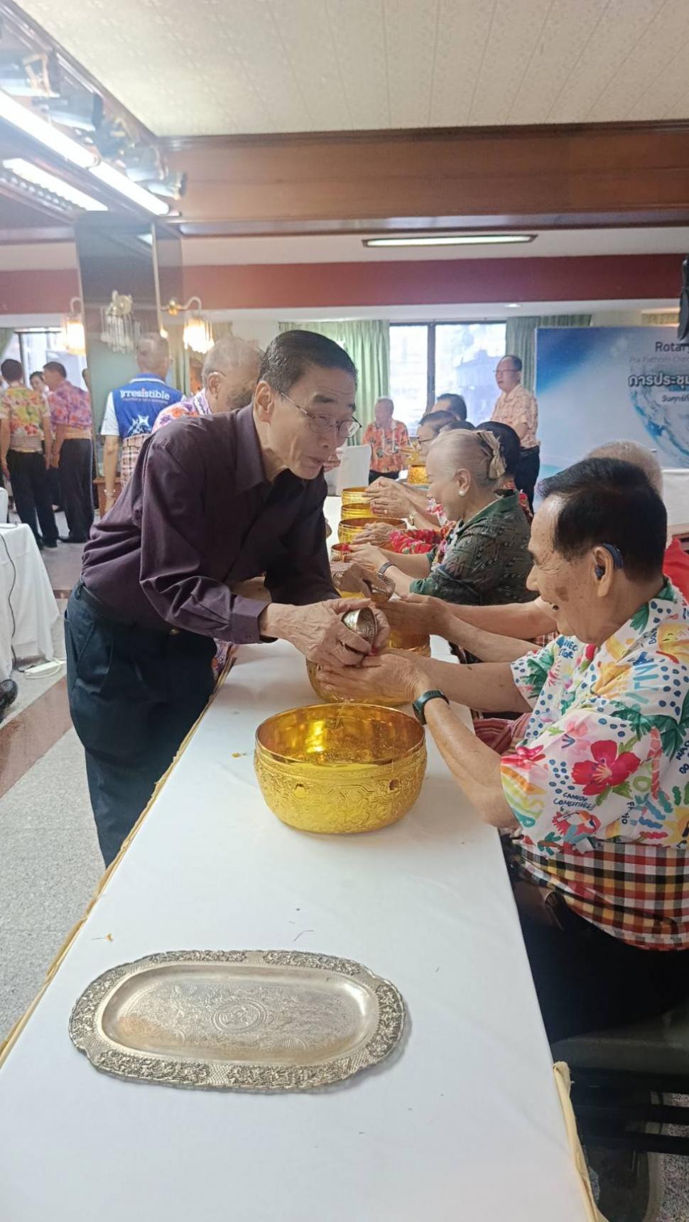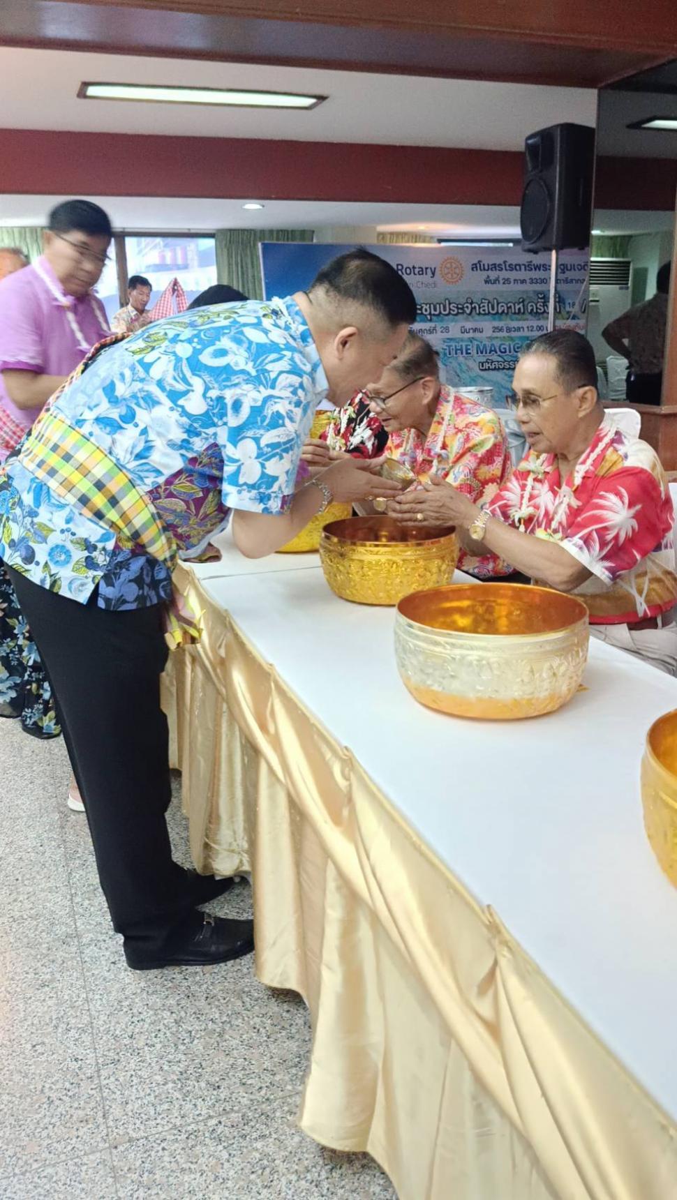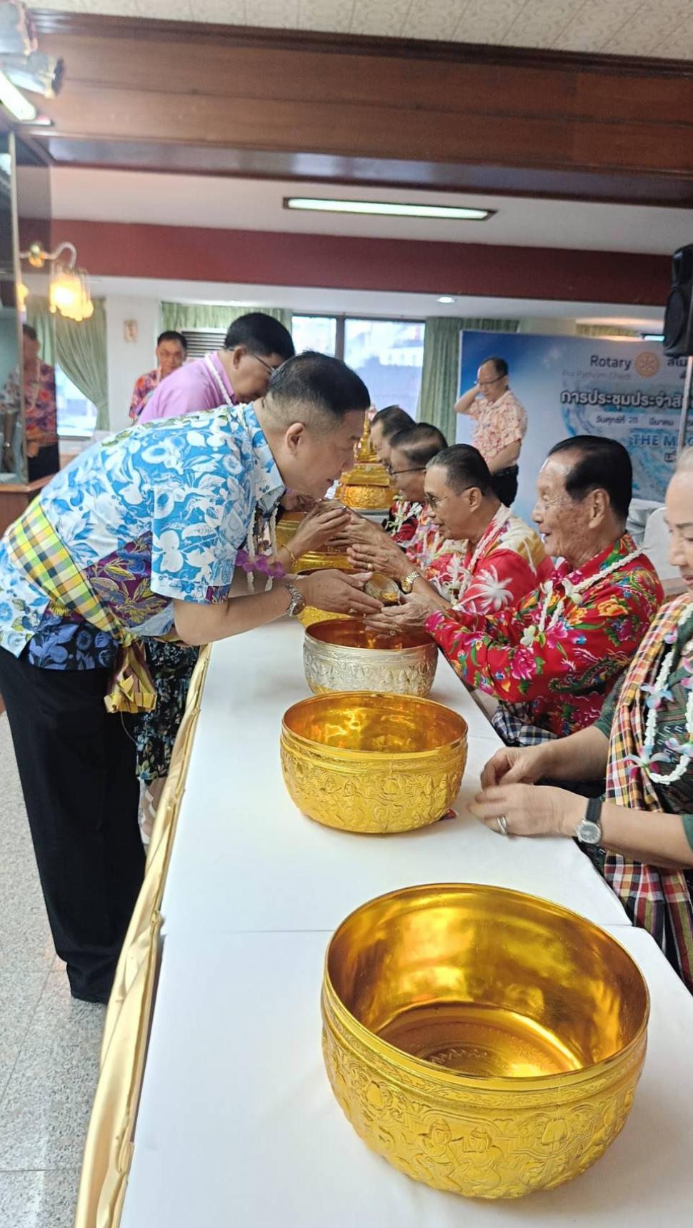 วันอังคารที่ 8 เมษายน 2568 สโมสรโรตารีนครปฐม โดย นย.ฐิติพงศ์ วัฒนาอนันต์กุล เปิดการประชุมปกติประจำสัปดาห์ ณ ห้องทับทิม โรงแรมเวล พร้อมทั้งจัดพิธีรดน้ำขอพรจากผู้ใหญ่ในสโมสร เพื่อสืบสานประเพณีอันดีงามในเทศกาลสงกรานต์ และแสดงความเคารพต่อผู้ใหญ่ซึ่งเป็นที่รักและนับถือ