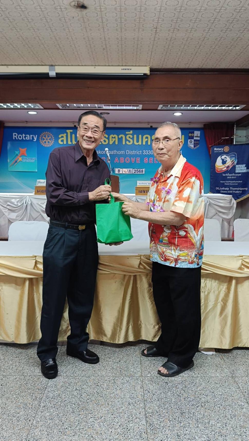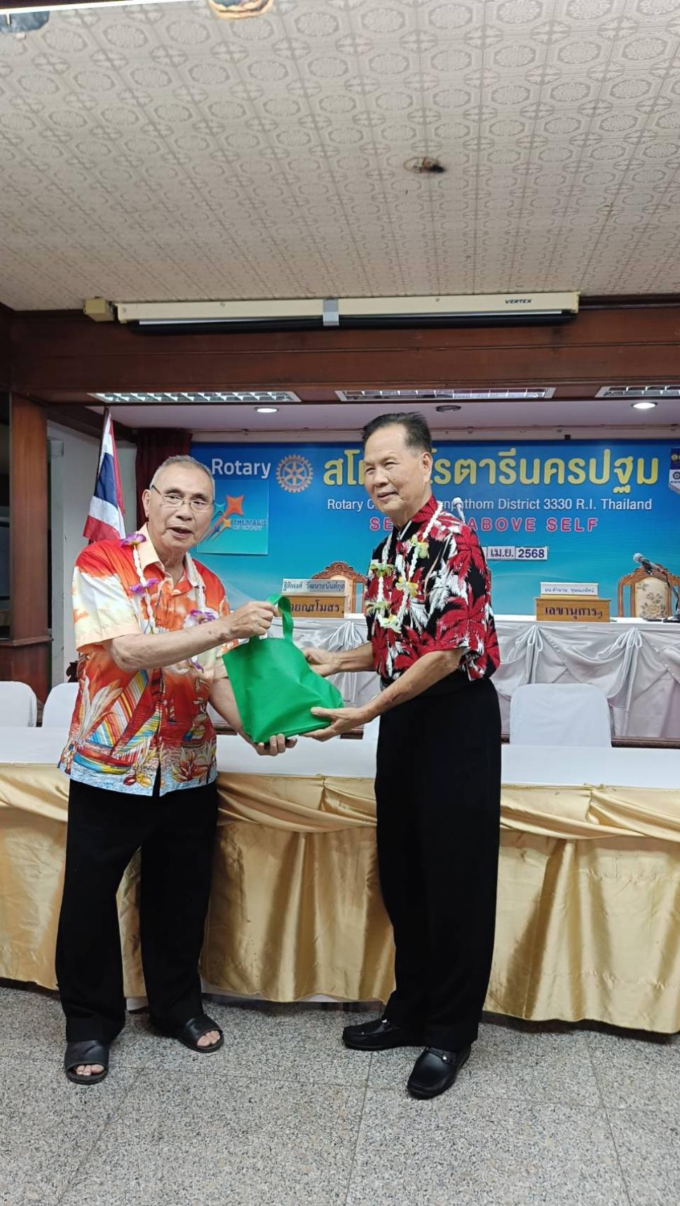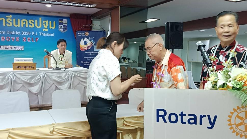 วันอังคารที่ 8 เมษายน 2568 สโมสรโรตารีนครปฐม โดย นย.ฐิติพงศ์ วัฒนาอนันต์กุล เปิดการประชุมปกติประจำสัปดาห์ ณ ห้องทับทิม โรงแรมเวล พร้อมทั้งจัดพิธีรดน้ำขอพรจากผู้ใหญ่ในสโมสร เพื่อสืบสานประเพณีอันดีงามในเทศกาลสงกรานต์ และแสดงความเคารพต่อผู้ใหญ่ซึ่งเป็นที่รักและนับถือ