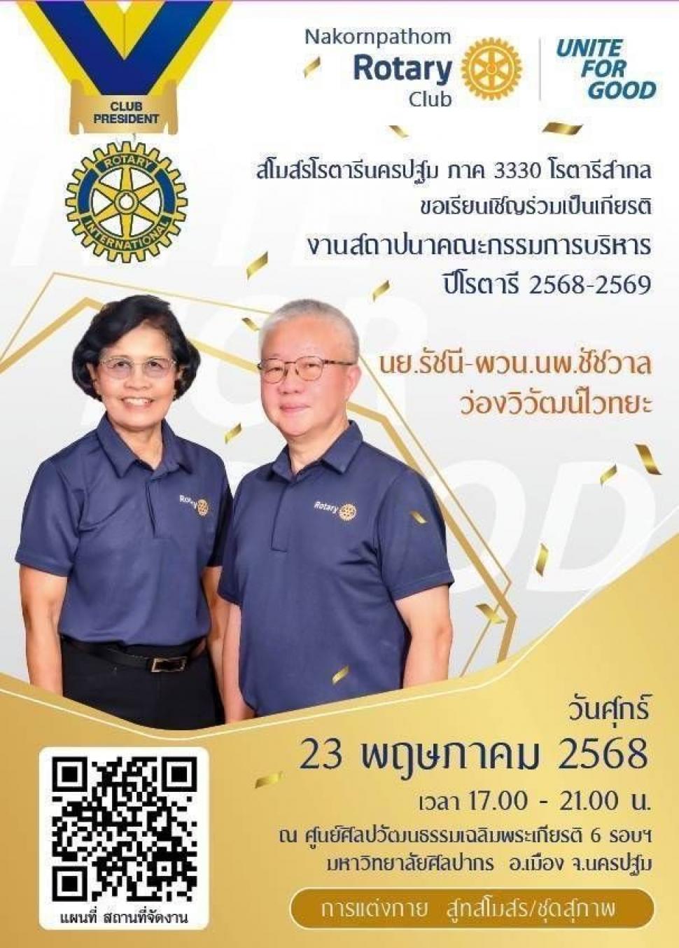 และร่วมแสดงความยินดีกับ นายกรัชนี ว่องวิวัฒน์ไวทยะ นายกสโมสรสุภาพสตรีคนแรกของสโมสรในรอบ50กว่าปี สถานที่ ศูนย์ศิลปวัฒนธรรมเฉลิมพระเกียรติ6รอบพระชนมพรรษา มหาวิทยาลัยศิลปกร พระราชวังสนามจันทร์ อ.เมืองนครปฐม จ.นครปฐม