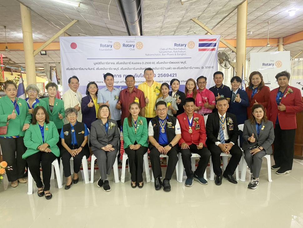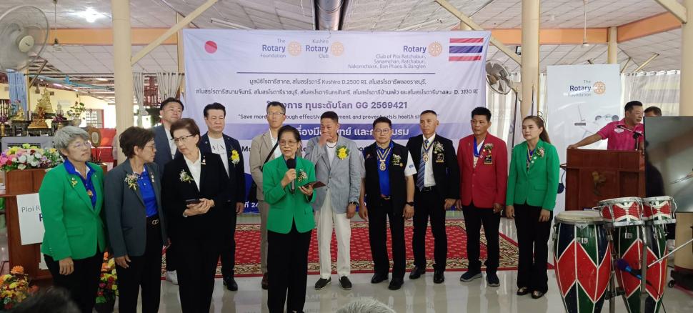วันเสาร์ที่ 24 พฤษภาคม 2568 เวลา 09.00 น. นายก ดร.เทวินทร์ บุบผาคำ พร้อมด้วย อน.อัญชลี อมรสิน ประธานมูลนิธิโรตารี สโมสรโรตารีสนามจันทร์ ร่วมกับสโมสรโรตารีพลอยราชบุรี /สโมสรโรตารีราชบุรี / สโมสรโรตารีบ้านแพ้ว / สโมสรโรตารีนครชัยศรี และสโมสรโรตารีบางเลน ร่วมพิธีเปิดโครงการ GG 2569421 มอบเครื่องมือแพทย์ ให้โรงพยาบาลบางแพ อ.บางแพ จ. ราชบุรี และเข้าร่วมอบรมให้ความรู้เกี่ยวกับการป้องกันตนเอง การดูแลตนเอง โรคหลอดเลือดสมอง ชีวิตรอดปลอดภัย โดยมี นายสมบัติ เสียมทอง (นายอำเภอบางแพ) กล่าวเปิดการอบรมโครงการ