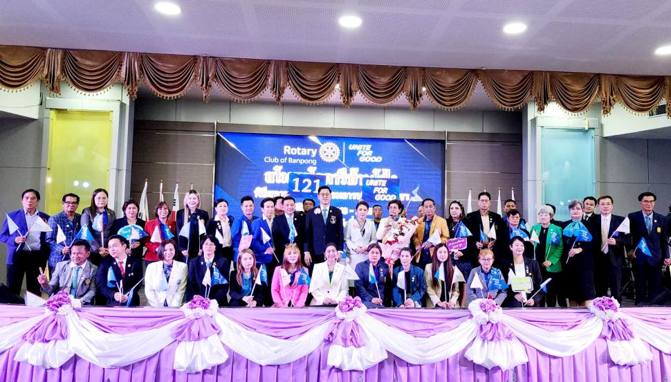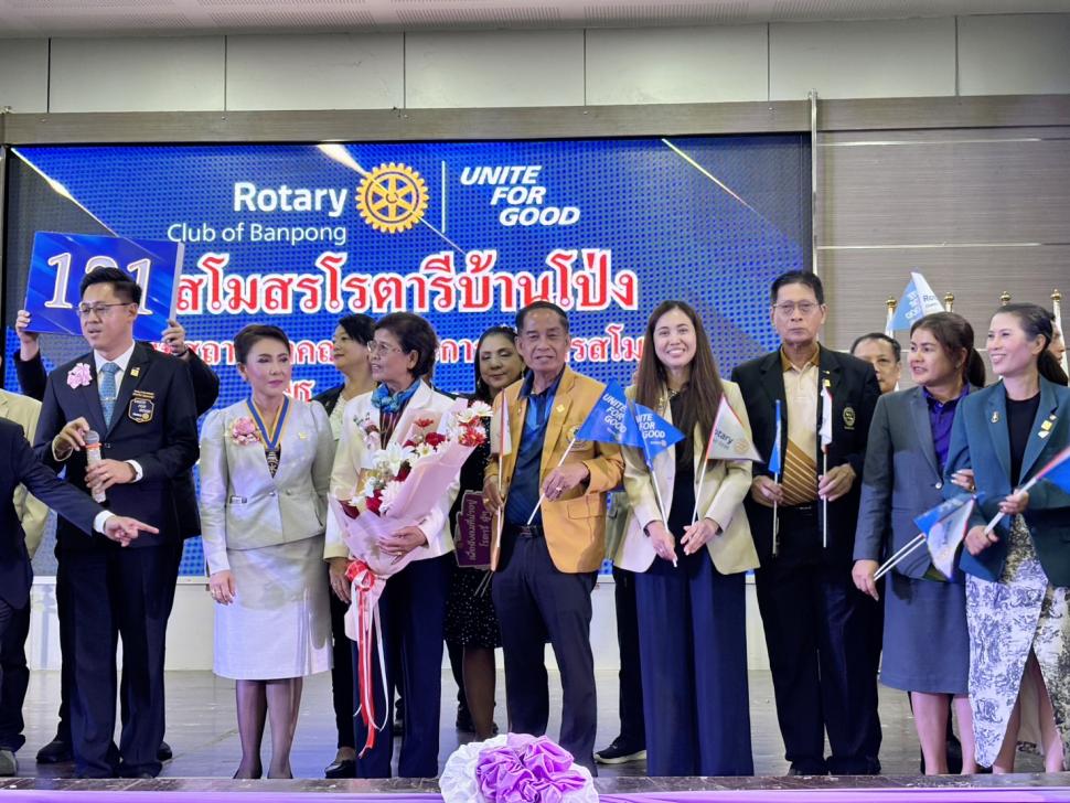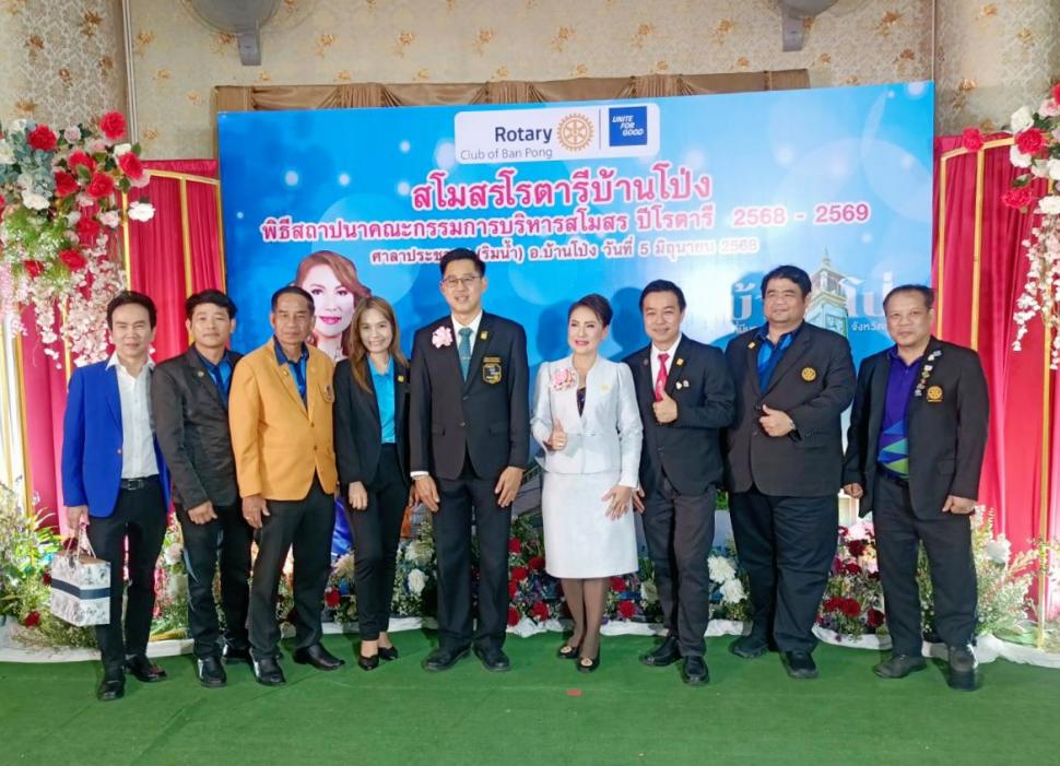 สโมสรโรตารีนเรศวร-กาญจนบุรี ภาค 3330 โรตารีสากล นำโดยนายกรับเลือกสะอาด ทั่นเส้ง พร้อมด้วยนายกและสมาชิกสโมสรฯ ร่วมงานพิธีสถาปนานายก และคณะกรรมการบริหารสโมสรโรตารีบ้านโป่ง เพื่อแสดงความยินดีกับนายกรับเลือกจณิตา วัฒนมะโน ในโอกาสขึ้นรับตำแหน่งนายกสโมสรโรตารีบ้านโป่ง ปีโรตารี 2568-2569 ณ ศาาประชาคม (ริมน้ำ) อ.บ้านโป่ง จ.ราชบุรี