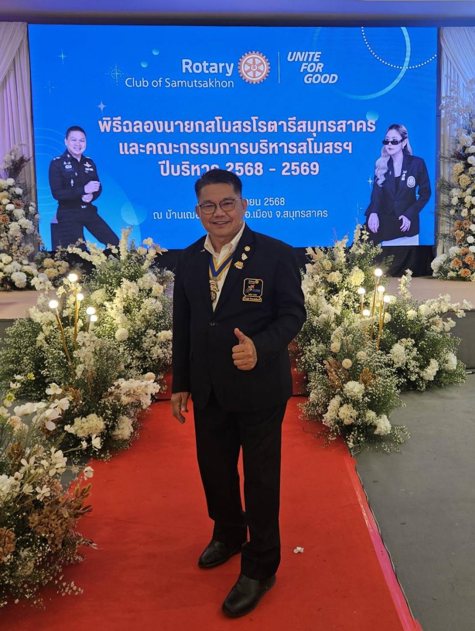 วันที่ 7 มิถุนายน 2568 สโมสรโรตารีสนามจันทร์ นำโดย นยล.สุกิจ นิยมทรัพย์ พร้อมด้วยอดีตนายกและสมาชิกสโมสรฯ เข้าร่วมแสดงความยินดีในพิธีสถาปนานายกและคณะกรรมการบริหารสโมสรโรตารีสมุทรสาคร ปีบริหาร 2568-2569 เพื่อแสดงความยินดีกับ นายกสุภาภรณ์ พัวพันธ์ เนื่องในโอกาสที่เข้ารับตำแหน่งนายกสโมสรโรตารีสมุทรสาคร ณ บ้านเฌอ อ.เมืองสมุทรสาคร จ.สมุทรสาคร