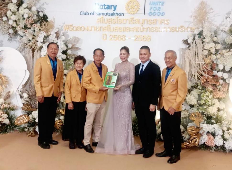 สโมสรโรตารีนเรศวร-กาญจนบุรี ภาค 3330 โรตารีสากล นำโดยนายกรับเลือกสะอาด ทั่นเส้ง พร้อมด้วยนายกและสมาชิกสโมสรฯ เข้าร่วมงานพิธีสถาปนานายก และคณะกรรมการบริหารสโมสรโรตารีสมุทรสาคร เพื่อแสดงความยินดีกับนายกรับเลือกสึภาภรณ์ พัวพันธ์ ในโอกาสขึ้นรับตำแหน่งนายกสโมสรโรตารีสมุทรสาคร ปีโรตารี 2568-2569 ณ บ้านเฌอ อ.เมือง จ.สมุทรสาคร