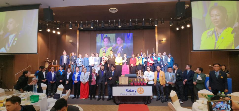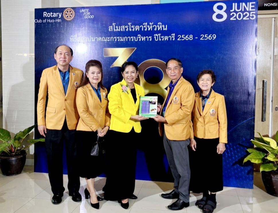 สโมสรโรตารีนเรศวร-กาญจนบุรี ภาค 3330 โรตารีสากล นำโดยนายกรับเลือกสะอาด ทั่นเส้ง พร้อมด้วยนายกและสมาชิกสโมสรฯ ร่วมงานพิธีสถาปนายายก และคณะกรรมการบริหารสโมสรโรตารีหัวหิน เพื่อแสดงความยินดีกับนายกรับเลือกศณิสา ศรีอาจ ในโอกาสขึ้นรับตำแหน่งนายกสโมสรโรตารีหัวหิน ปีโรตารี 2568-2569 ณ The Kaset อ.หัวหิน จ.ประจวบคีรีขันธ์