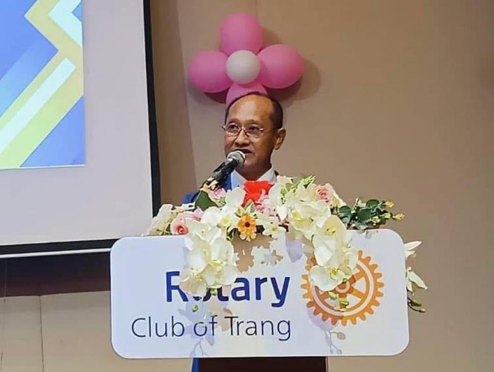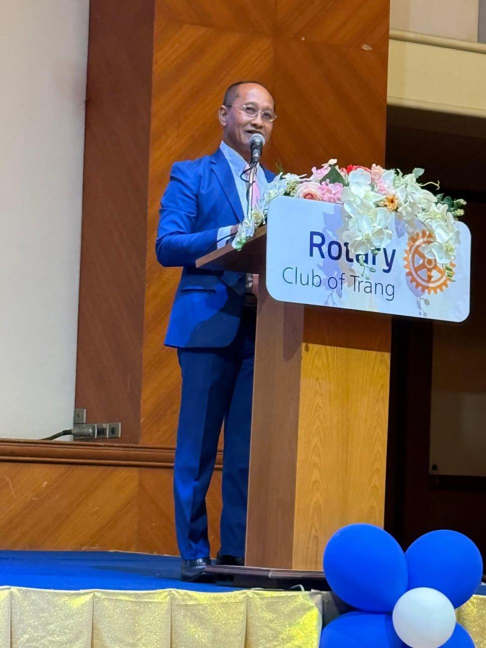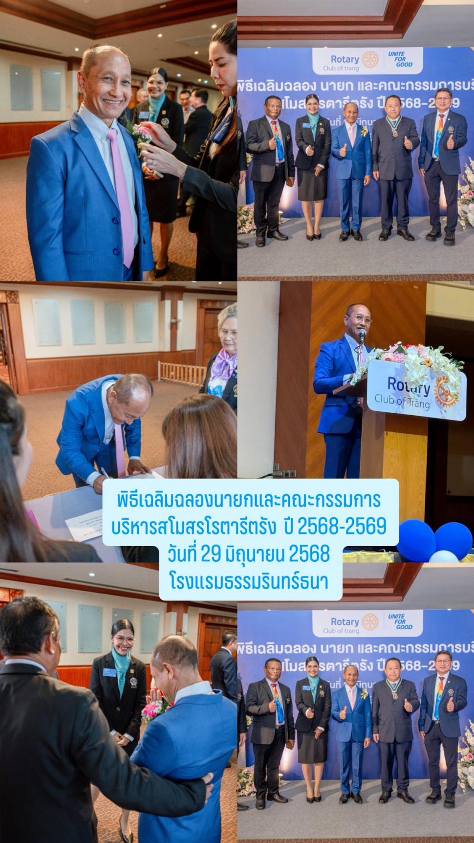 กล่าวแสดงความยินดีในโอกาสเฉลิมฉลองนายกและคณะกรรมการบริหารสโมสรโรตารีตรัง ปีโรตารี 2568-2569 ณ ห้องธนารมย์ โรงแรมธรรมรินทร์ ธนา อำเภอเมืองตรัง