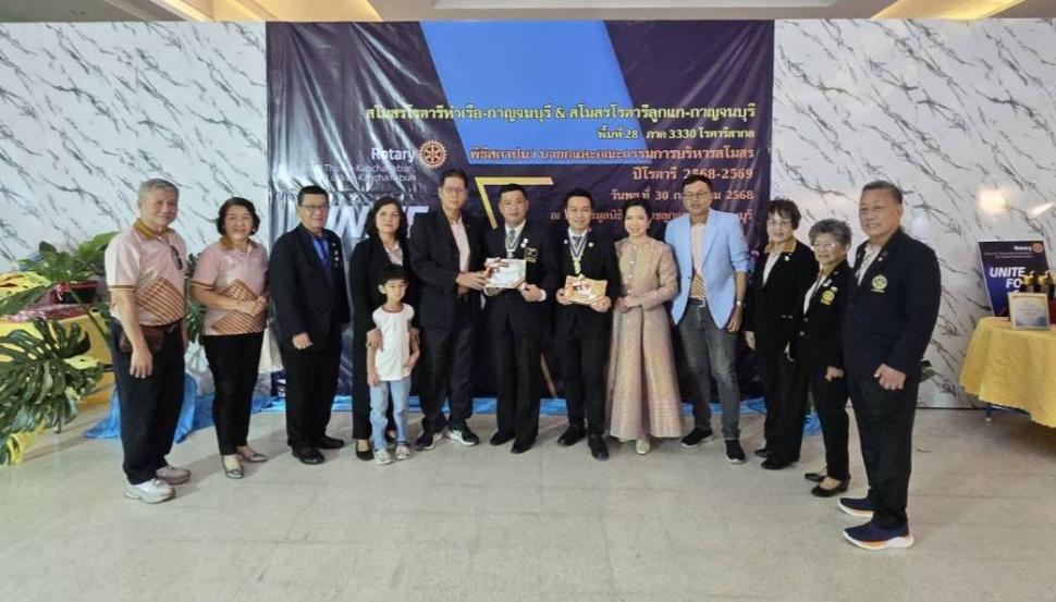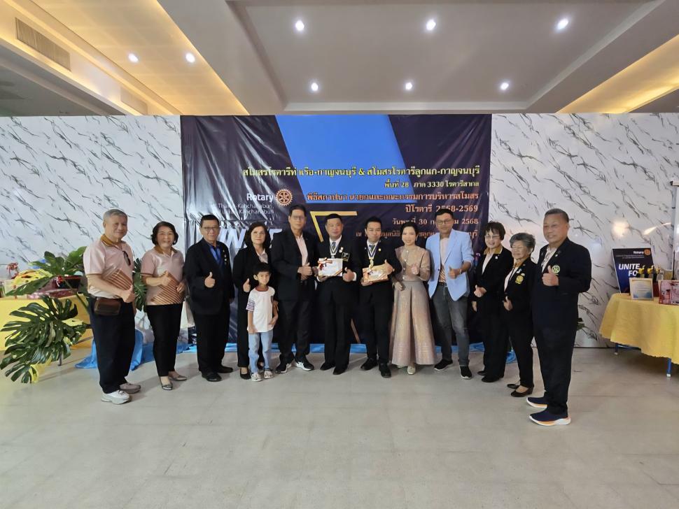 สโมสรโรตารีสนามจันทร์ร่วมแสดงความยินดี กับนายกและคณะกรรมการสโมสรโรตารีท่าเรือ-กาญจนบุรี และสโมสรโรตารีลูกแก-กาญจนบุรี ปีบริหาร 2568-2569