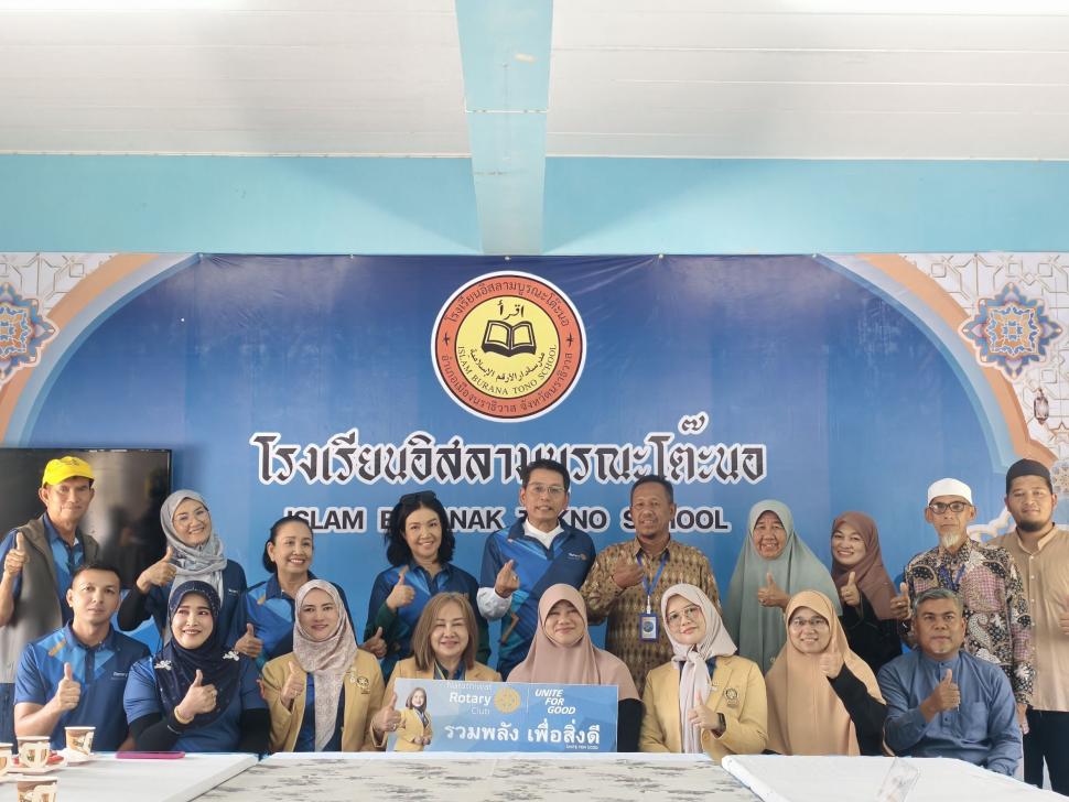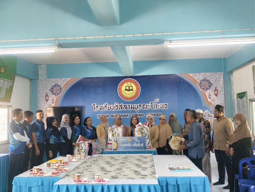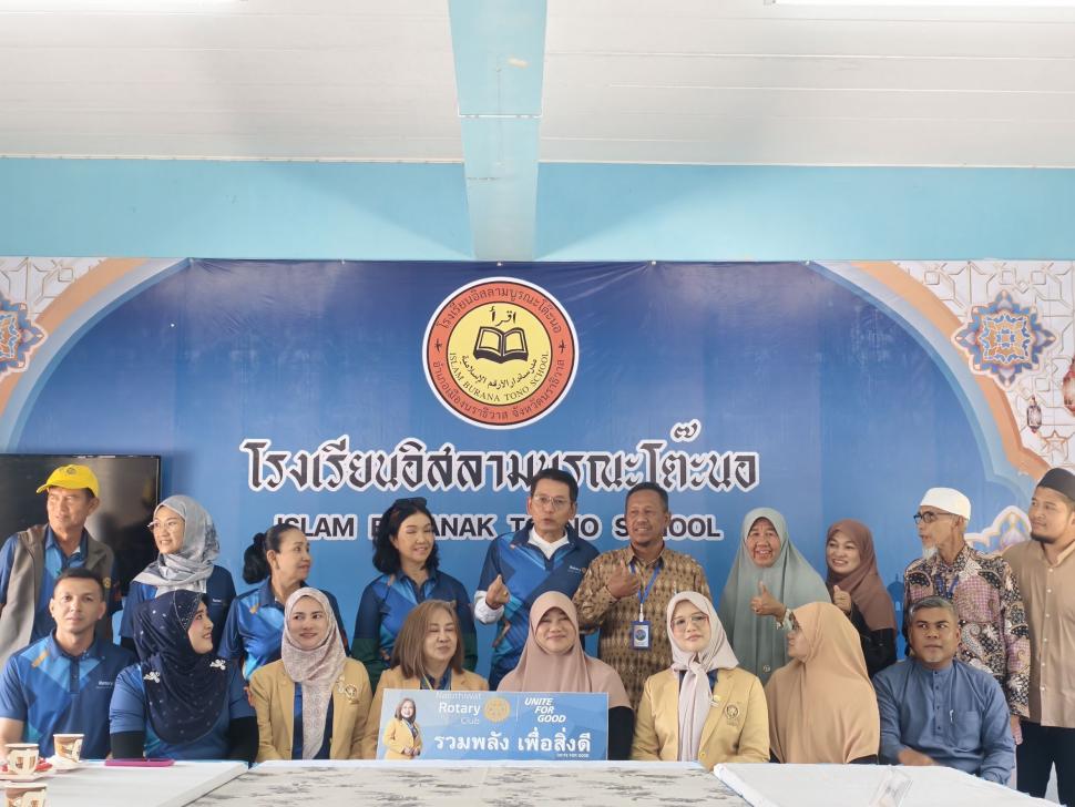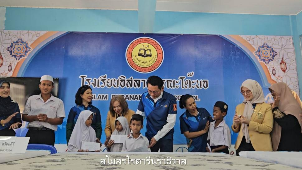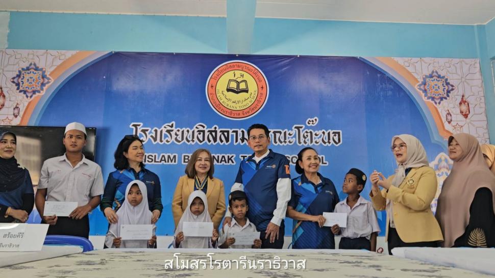 วันพฤหัสบดี ที่31กรกฎาคม2568 สโมสรโรตารีนราธิวาส นำโดยนายกสวรรยา สร้อยคีรี และสมาชิก เดินทางมอบทุนการศึกษาให้กับนักเรียน เรียนดีแต่ขาดแคลนทุนทรัพย์ โรงเรียนอิสลามบูรณะโต๊ะนอ ต.มะนังตายอ อ.เมือง จ.นราธิวาส และมอบข้าวสารจำนวน4กระสอบ