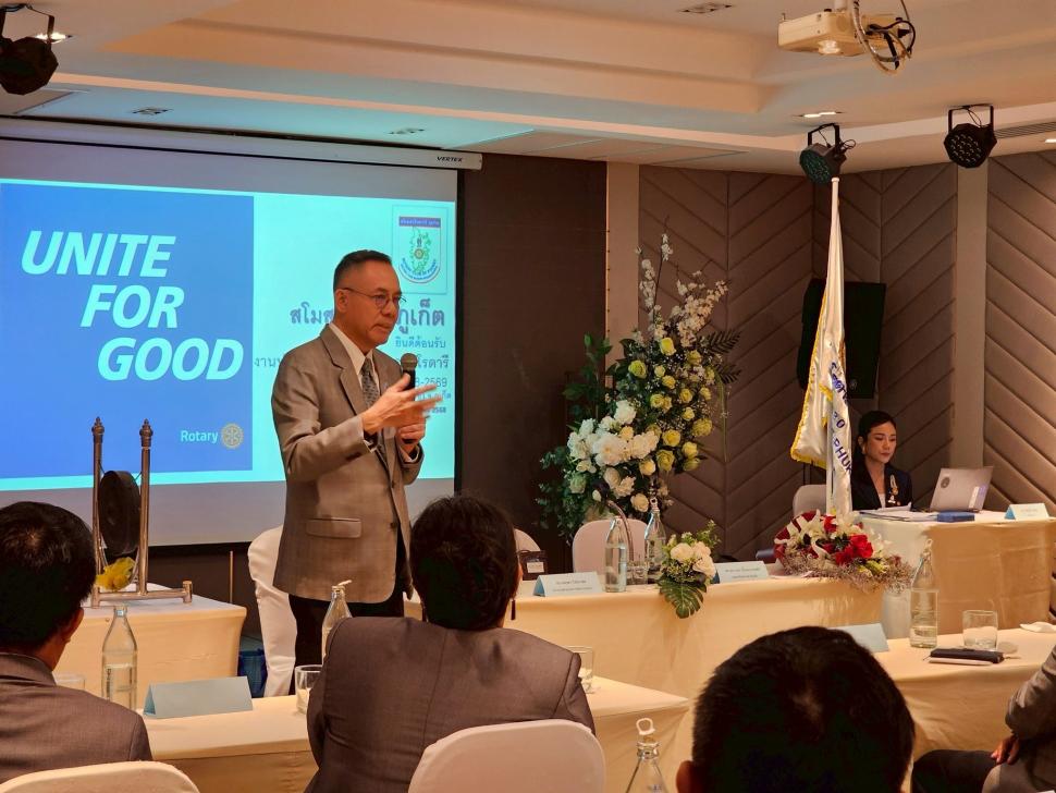 ได้รับความกรุณาจากท่าน สาโรจน์ อังคณาพิลาส อดีตนายกสโมสรโรตารีภูเก็ตและอดีตนายกเทศมนตรีนครภูเก็ต ในการสนเทศโรตารี ให้กับผู้ร่วมประชุม