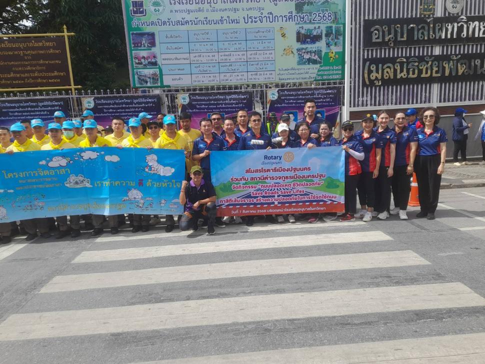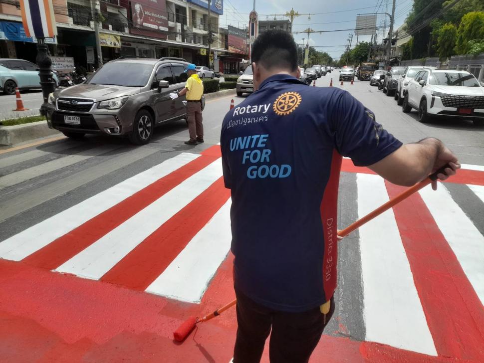 ... สโมสรโรตารีเมืองปฐมนคร ร่วมกับ สถานีตำรวจภูธรเมืองนครปฐม และ Street Art King Bhumibol นครปฐม จัดกิจกรรม " ถนนปลอดเหตุ ชีวิตปลอดภัย Save Roads Save Lifes " ทาสีเส้นจราจร (ทางม้าลาย) สร้างความปลอดภัยในการใช้รถใช้ถนน เมื่อวันพฤหัสบดีที่ 7 สิงหาคม 2568 ณ บริเวณหน้าโรงเรียนอนุบาลไผทวิทยา (มูลนิธิชัยพัฒนา) ถ.ราชวิถี ต.พระปฐมเจีย์ อ.เมือง จ.นครปฐม