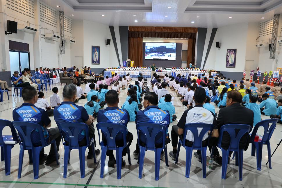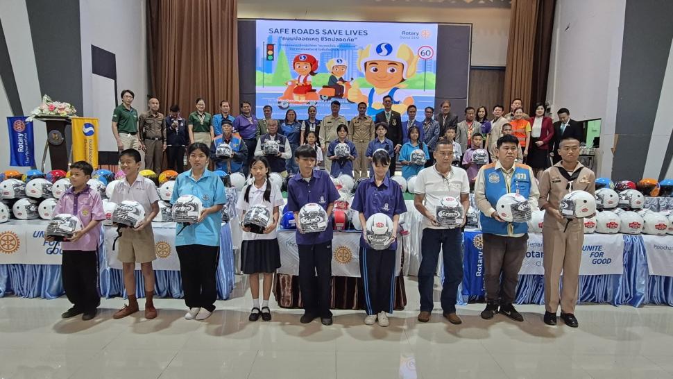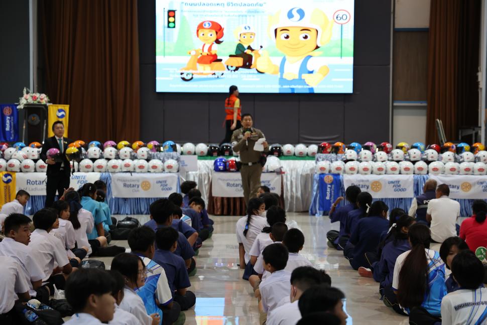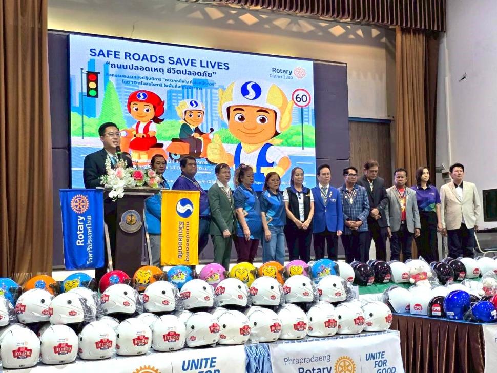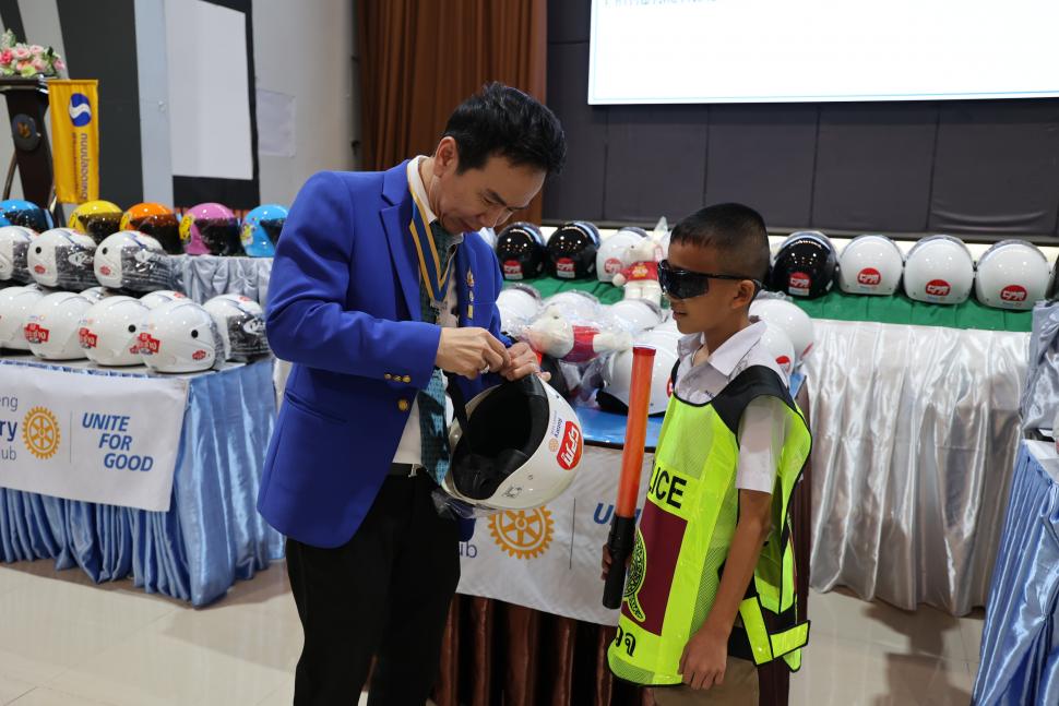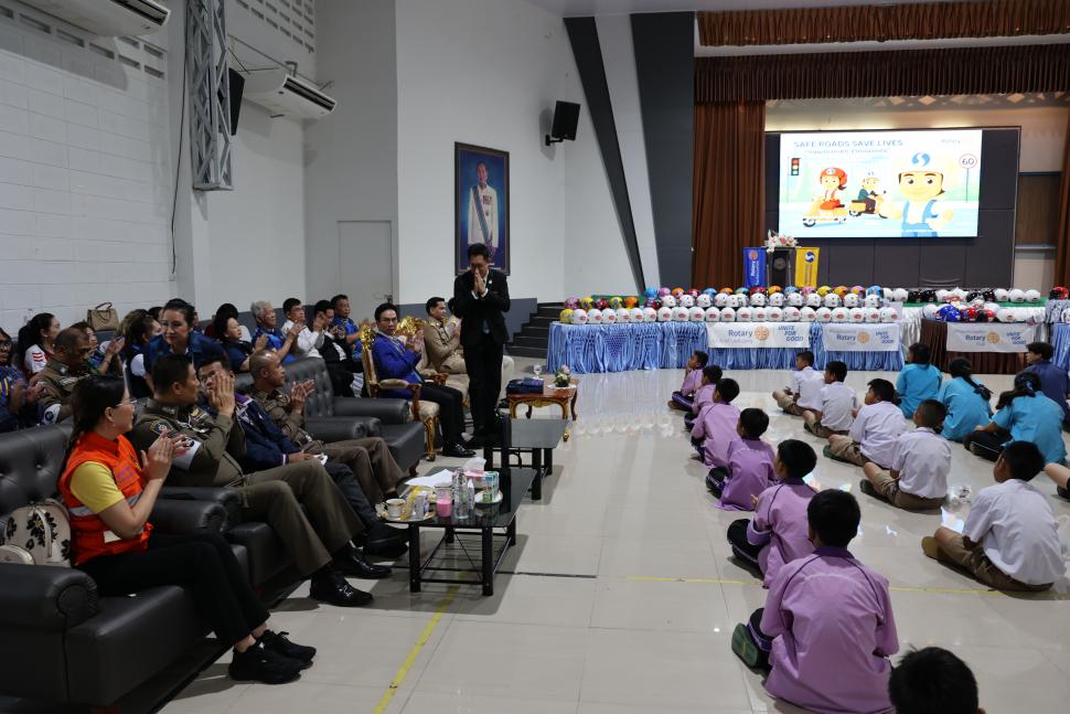 วันที่ 15 กันยายน 2568 เวลา 13.30-16.00 น. นย.พีรเดช ประชุมชนเจริญ นายกสโมสรโรตารีเทพารักษ์ ภาค 3330 พื้นที่ 22 ปีโรตารี 2568-2569 และสมาชิกสโมสรฯ ร่วมเปิดโครงการอบรมเชิงปฏิบัติการ “หมวกหนึ่งใบ หัวใจหนึ่งดวง” ภายใต้โครงการ Safe Roads Save Lives “ถนนปลอดเหตุ ชีวิตปลอดภัย” ณ ห้องประชุมใหญ่ โรงเรียนป้อมนาคราชสวาทยานนท์ อำเภอพระสมุทรเจดีย์ จังหวัดสมุทรปราการ โดยสโมสรโรตารีพระสมุทรเจดีย์ เป็นเจ้าภาพหลักจับมือกับสโมสรโรตารีในจังหวัดสมุทรปราการอีก 9 สโมสร