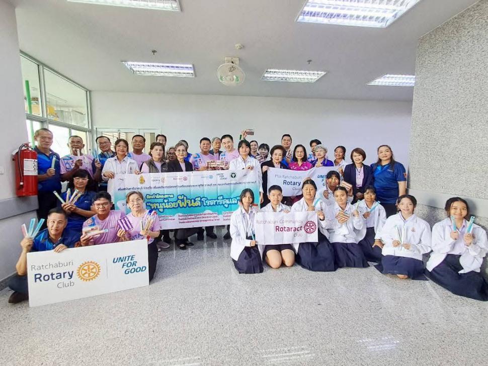 สโมสรโรตารีราชบุรี ร่วมกันสโมสรอินเทอร์แรคท์โรงเรียนราชโบริกานุเคราะห์มอบแปรงสีฟันและยาสีฟัน ให้กับแผนกทันตกรรม โรงพยาบาลราชบุรี