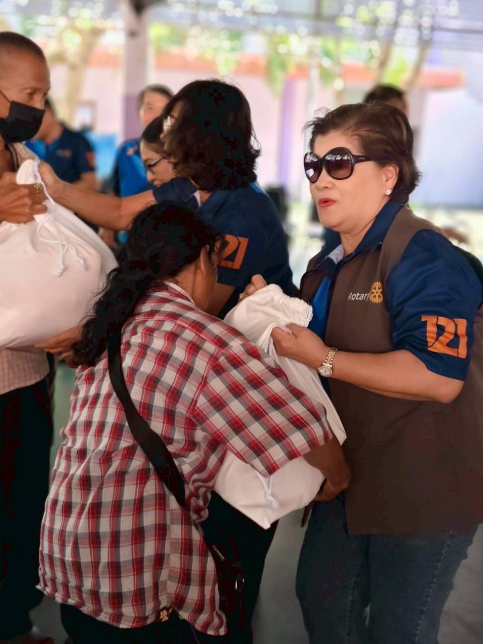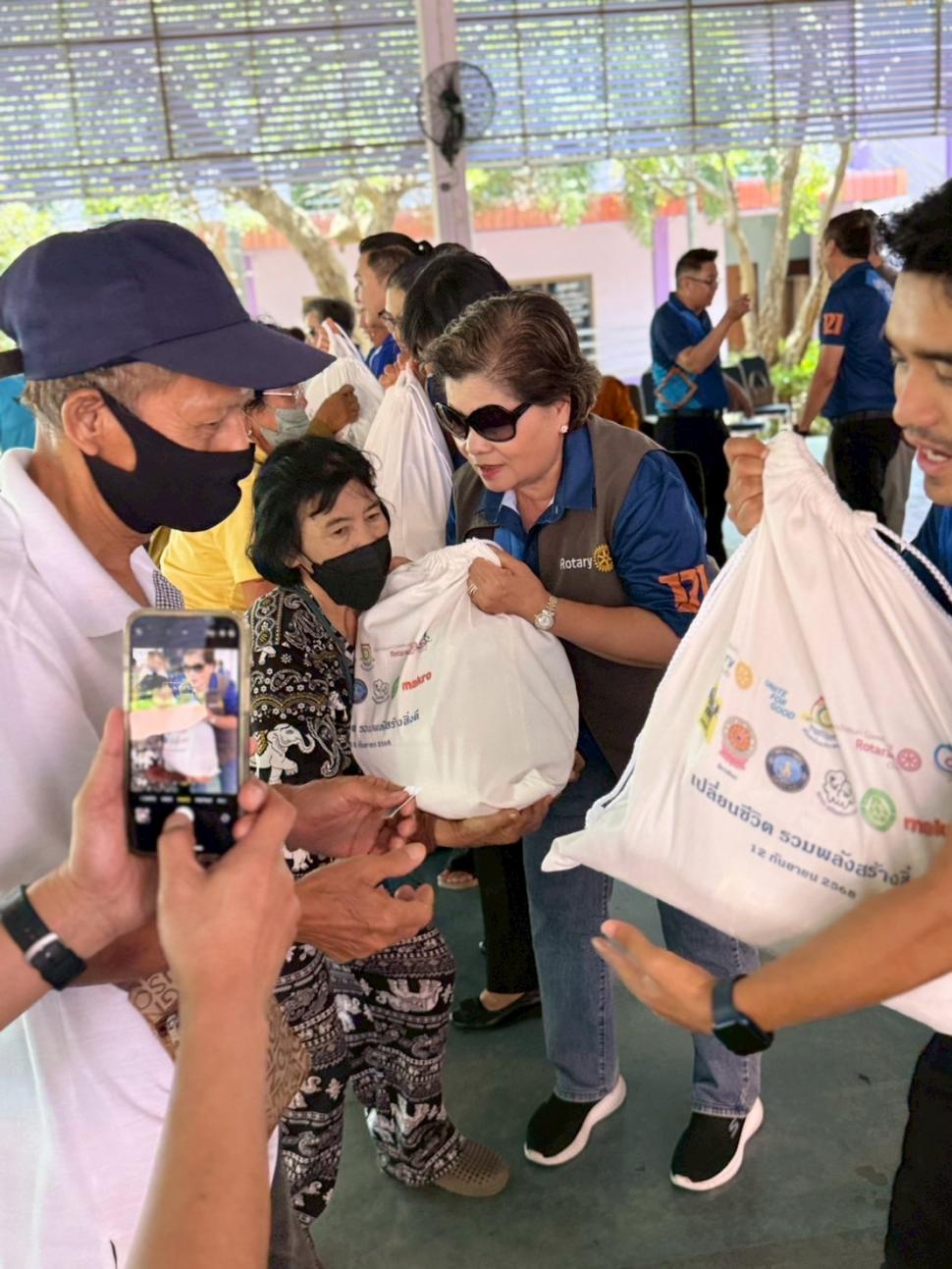 สโมสรโรตารีราชบุรี แจกข้าวกล่อง และถุงยังชีพให้ผู้พิการ ผู้ยากไร้ ผู้ด้อยโอกาสในชุมชนเขตพื้นที่เทศบาลตำบลเขางู ตามโครงการ "เปลี่ยนชีวิต รวมพลัง สร้างสิ่งดี" รวมจำนวน 121 ถุง