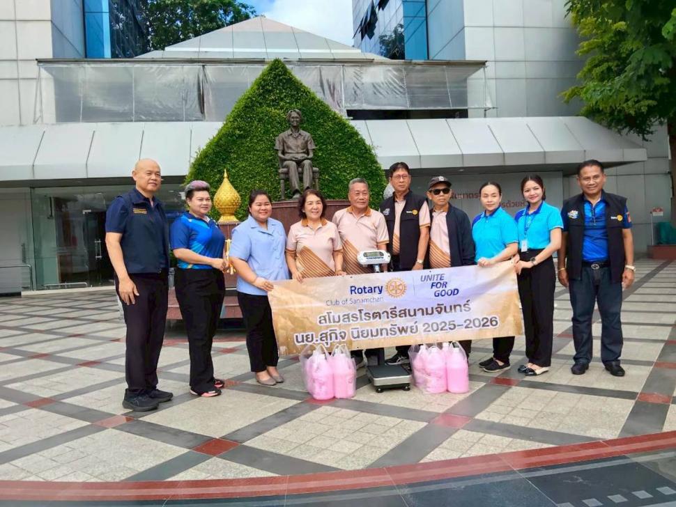 วันที่ 12 กันยายน 2568 สโมสรโรตารีสนามจันทร์ นำโดย นย.สุกิจ นิยมทรัพย์ พร้อมด้วยคณะกรรมการบริหารสโมสร นำเครื่องชั่งน้ำหนัก จำนวน 1 เครื่อง เพื่อส่งมอบให้กับโรงพยาบาลบ้านแพ้ว นำไปใช้ประโยชน์ต่อไป