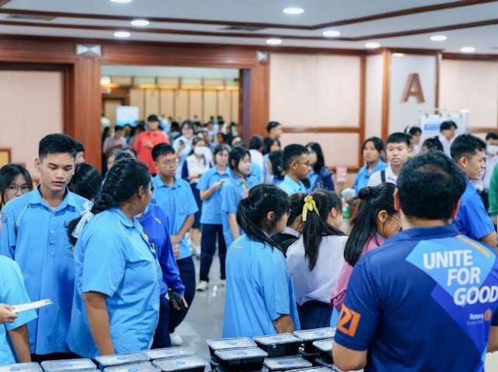 ทางสโมสรร่วมสนับสนุน ข้าวกล่อง 200 กล่อง และขนม 400 ชิ้น พร้อมน้ำดื่มไปให้น้องๆที่มาติว รับประทานเติมพลังช่วงพักเที่ยง บรรยากาศเต็มไปด้วยความคึกคัก มีน้องๆนักเรียนจากหลากหลายโรงเรียนในสมุทรปราการเข้าร่วมกิจกรรมครั้งนี้
