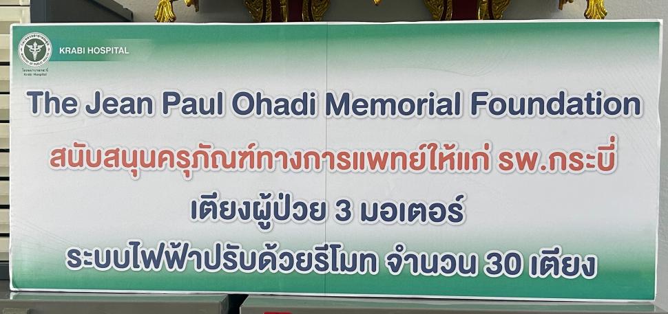 ได้รับการสนับสนุนเงินจากมูลนิธิ Jean Paul Ohadi Memorial ประสานงานโดยสโมสรโรตารีเหลืองกระบี่ นำโดยนายก ดร.สุดารัตน์ แก้วเก้า ผ่านมูลนิธิภาคโรตารีไทย มีรองผู้อำนวยการฝ่ายการพยาบาลโรงพยาบาลกระบี่ คุณลัดดาวัลย์ ปลอดฤทธิ์ เป็นประธานรับมอบ และ อดีตผู้ว่าการภาค 3330 โรตารีสากล นพ.พีระ ฟาร์มไพบูลย์ เป็นที่ปรึกษาโครงการค่ะ