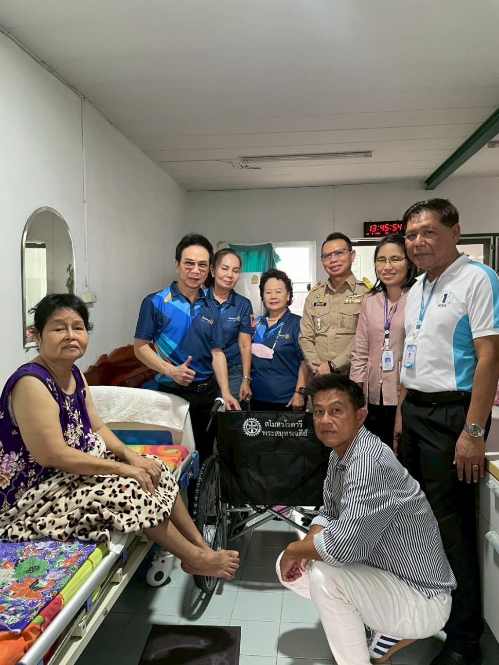 พร้อมด้วย สมาชิกสโมสรฯ ร่วมกับ อบต.ในคลองบางปลากด ส่งมอบรถเข็นวีลแชร์ให้แก่ผู้ป่วยที่มีปัญหาทางการเดิน