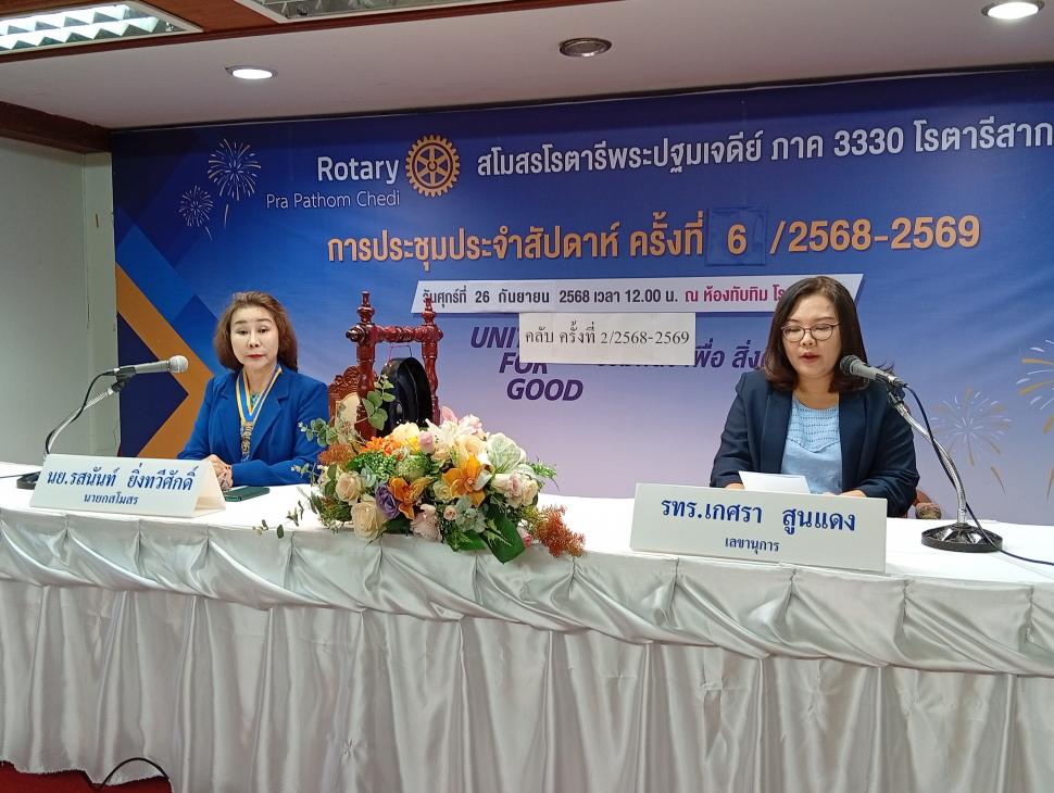 26 กย.68 สโมสรโรตารีพระปฐมเจดีย์ จัดประชุมประจำสัปดาห์ ครั้งที่ 6