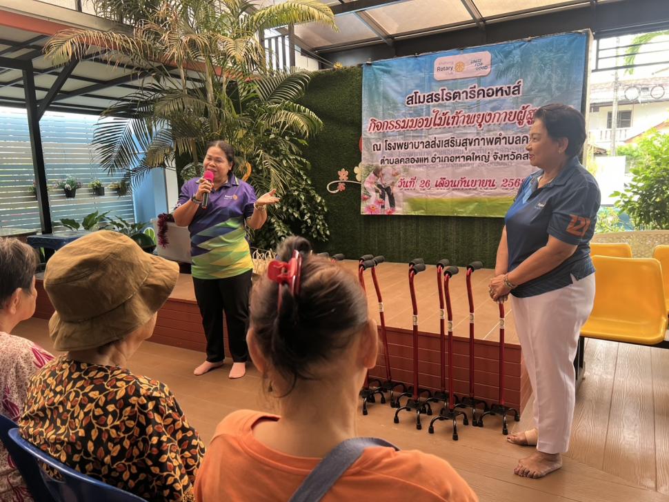 วันที่ 26 กันยายน 2568 สโมสรโรตารีคอหงส์ นำโดย นย.บุญเรือง ถาวรวิสิทธิ์ และสมาชิกสโมสรส่วนหนึ่ง ได้ไปจัดกิจกรรมการมอบไม้เท้าพยุงกายแก่ผู้สูงอายุเป็นรอบที่ 2 ณ.โรงพยาบาลส่งเสริมสุขภาพตำบลคลองแห อ.หาดใหญ่ จ.สงขลา ในการจัดมอบครั้งนี้ ทางสโมสรได้รับความอนุเคราะห์เรื่องการติดต่อประสานงานด้านสถานที่และการติดต่อกับผู้สูงอายุจาก คุณ ณิชาพัชร ถาวรวิสิทฺธิ์ เจ้าหน้าที่ของโรงพยาบาลดังกล่าว โดยมีนางปทิตตา ซุ้นซิ่ม ผู้อำนวยการโรงพยาบาลมาร่วมกิจกรรมและจัดให้เจ้าหน้าที่ ฝ่ายแพทย์แผนไทย ของโรงพยาบาล มาร่วมให้ความรู้เกี่ยวกับการดูแลรักษาเรื่องของข้อเข่าเสื่อมในผู้สูงอายุเป็นรายการพิเศษด้วย