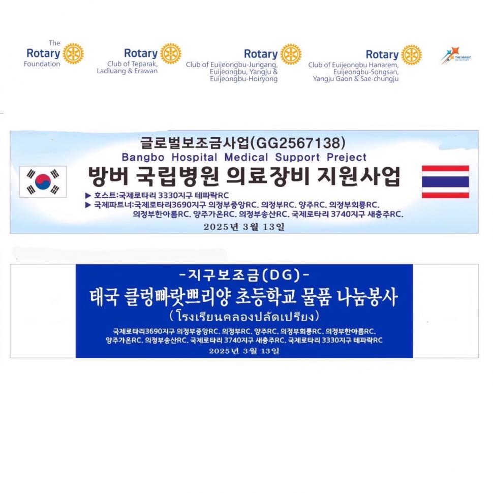 • วาระที่ 6 ส่งมอบโครงการ GG.No.2567138 วันที่ 2 ตุลาคม 2568 เวลา 14.00 น. ณ โรงพยาบาลบางบ่อ จังหวัดสมุทรปราการ ขอเรียนเชิญมวลมิตรมาร่วมส่งมอบ ด้วยไมตรีจิตแห่งโรตารี