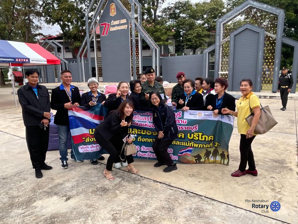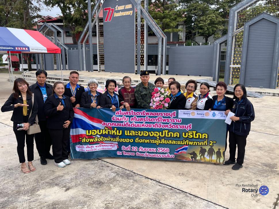 เมื่อวันที่ 22 กันยายน 2568 สโมสรโรตารีพลอยราชบุรี และสโมสรโรตารีโพธารามร่วมกับ สมาคมแม่ดีเด่นแห่งชาติจังหวัดราชบุรี ดำเนินกิจกรรม “ห่มรัก ปันสุข จากใจคนราชบุรี“ นำทีมโดย รทร.อารีย์ บวรพัฒนานนท์ และสมาชิกสโมสรโรตารีพลอยราชบุรี มอบผ้าห่ม และของอุปโภคบริโภคมากมาย เพื่อส่งพลังใจผ่านสิ่งของ ถึงทหารผู้เสียสละแม่ทัพภาคที่ 2 ที่จังหวัดนครราชสีมา