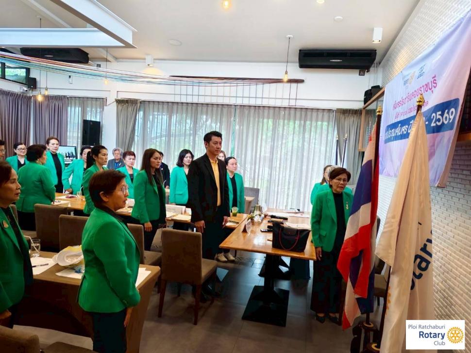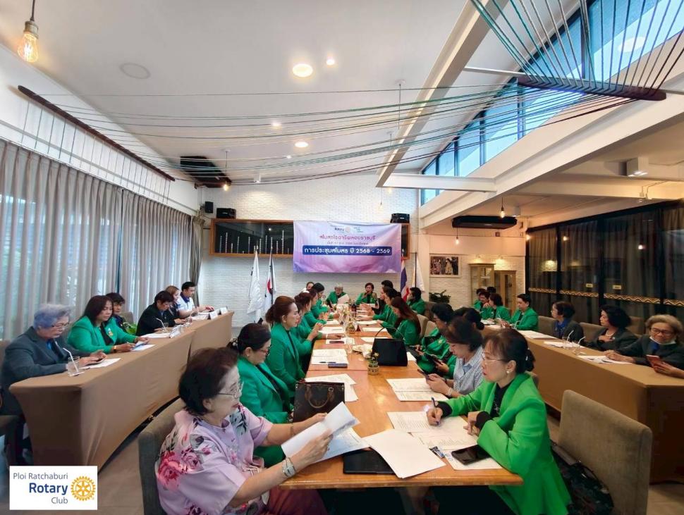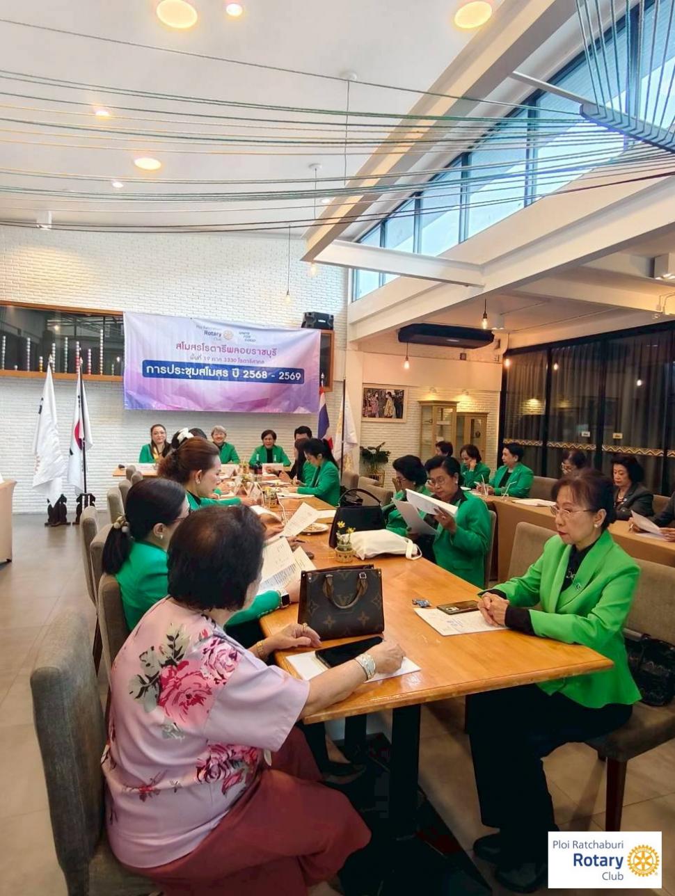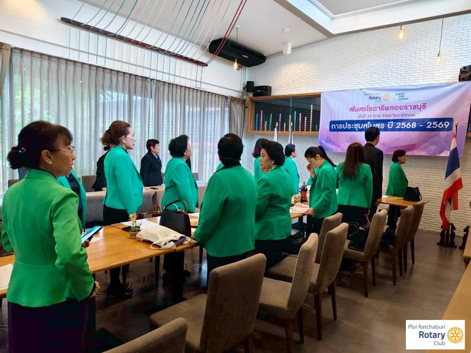 สโมสรโรตารีพลอยราชบุรี จัดการประชุมครั้งที่ 1 วันที่ 23 กรกฎาคม 2568 ที่โรงแรม ณ เวลา เป็นการประชุมเปิดตัวท่านนายกสมบัติ เกิดบุญมี