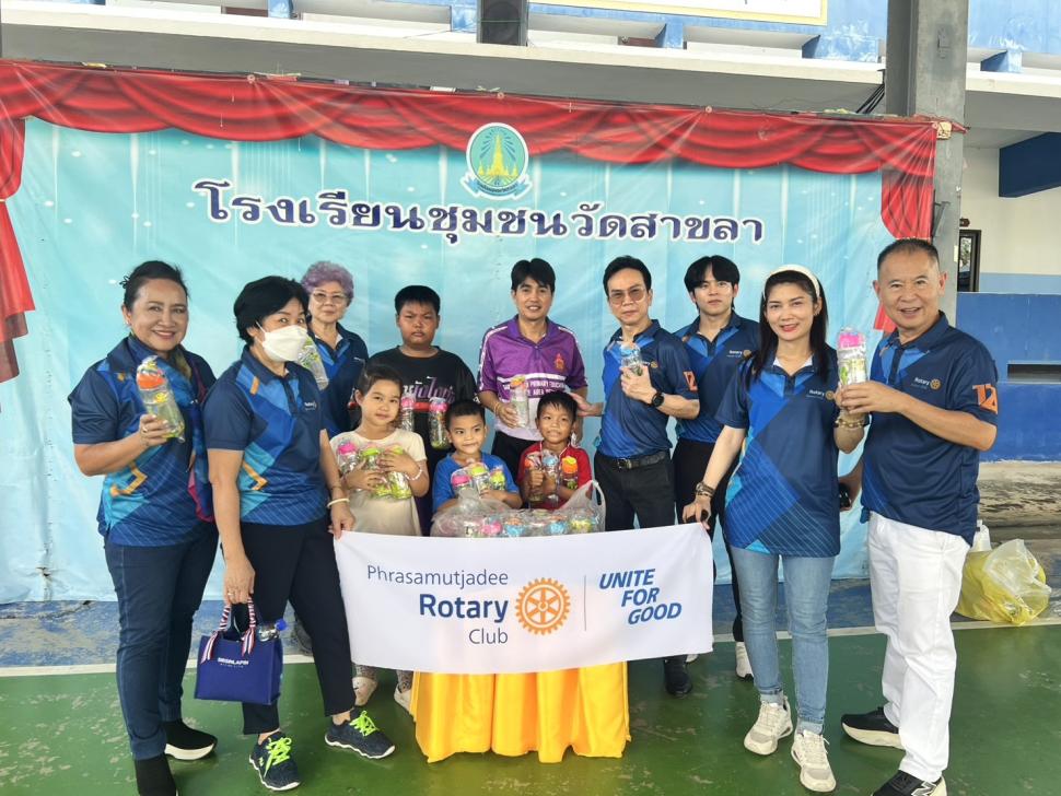 สโมสรโรตารีพระสมุทรเจดีย์ นำโดย นายเจษฎา มหาทองคำ นายกสโมสรฯ พร้อมด้วยสมาชิกและแอนน์ ร่วมกันมอบและเปลี่ยนชุดไส้กรองน้ำดื่มให้กับ โรงเรียนชุมชนวัดสาขลา จ.สมุทรปราการ