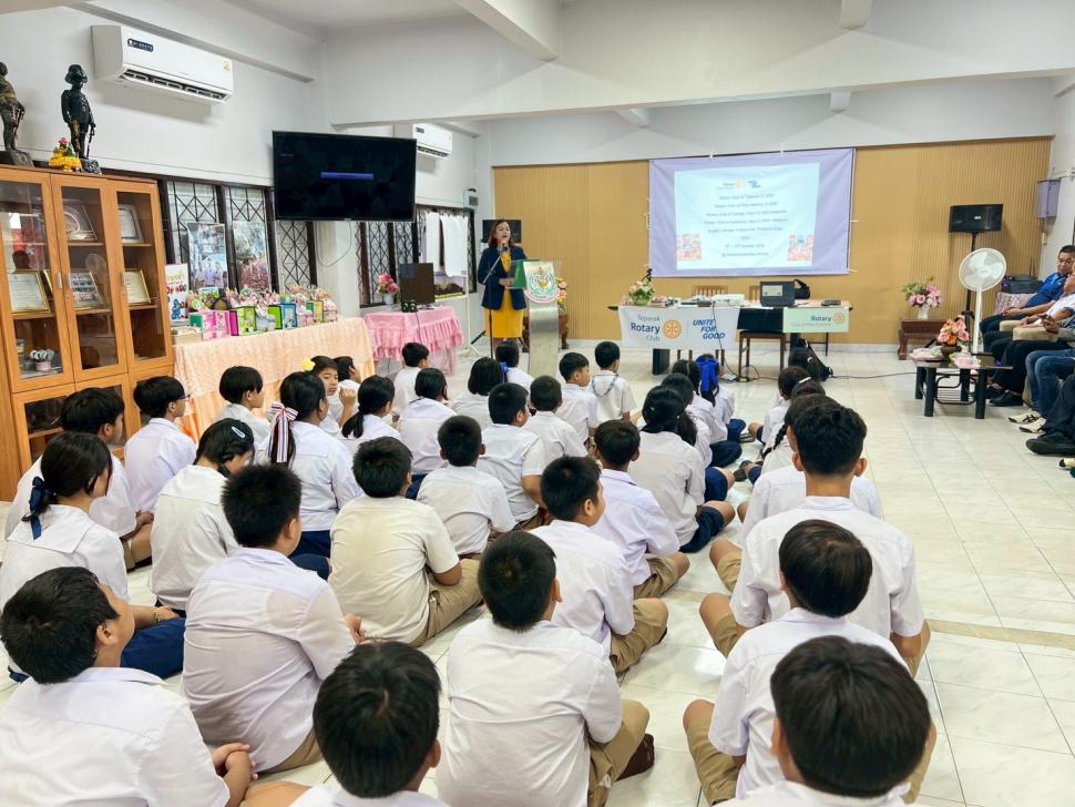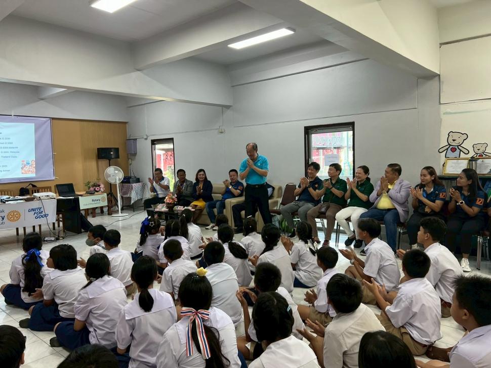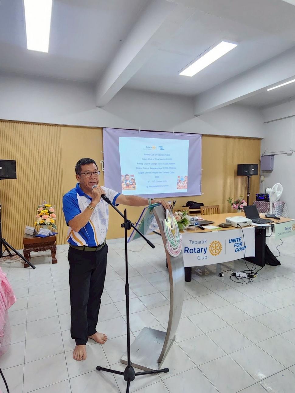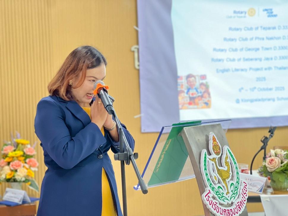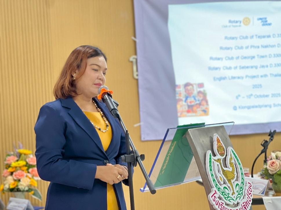 นย. พีรเดช ประชุมชนเจริญ นายกสโมสรโรตารีเทพารักษ์ ภาค 3330 ปีโรตารี 2568-2569 พร้อมด้วยสมาชิกสโมสร โรตารีแอนน์ สุภาพบุรุษ และแขกต่างสโมสร ร่วมเปิดโครงการ English Literacy Project (การเรียนรู้ภาษาอังกฤษ) วันที่ 6-10 ตุลาคม 2568 ณ โรงเรียนคลองปลัดเปรียง ตำบลบางแก้ว อำเภอบางพลี จังหวัดสมุทรปราการ เข้าร่วมพิธีฯ อย่างอบอุ่น