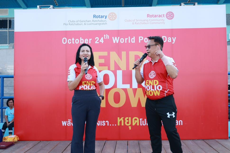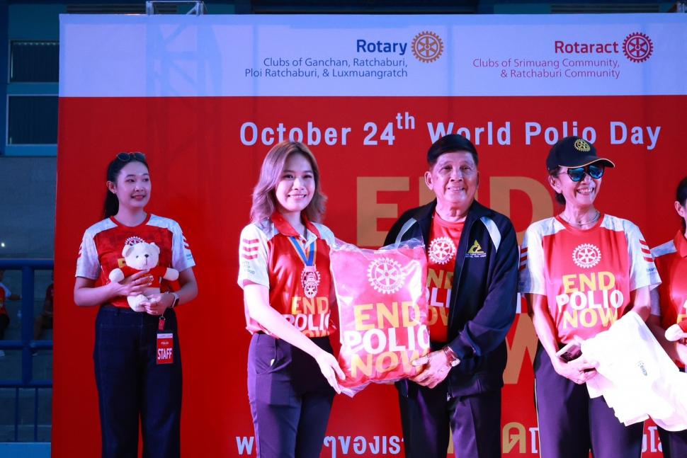 โดยมีสโมสรในพื้นที่ 19 ภาค 3330 โรตารีสากล ประกอบด้วย สโมสรโรตารีราชบุรี สโมสรโรตารีพลอยราชบุรี สโมสรโรตารีหลักเมืองราช สโมสรโรทาแรคท์ชุมชนศรีเมือง และสโมสรโรทาแรคท์ชุมชนราชบุรี ได้ร่วมกันจัดกิจกรรม โดยมีแพทย์หญิง ปาจรีย์ อารีย์รบ นายแพทย์สาธารณสุขจังหวัดราชบุรี เป็นประธานเปิดงาน อผภ.พลโท.คณิต แจ่มจันทรา กล่าวต้อนรับ พร้อมด้วย อน.ปฐมพร เจียสกุล ประธานคณะอนุกรรมการหยุดโปลิโอ ร่วมเป็นเกียรติในพิธีเปิดงาน เพื่อเป็นการรวมพลังรณรงค์ขจัดโปลิโอให้หมดไปจากโลก และส่งเสริมให้ประชาชนออกกำลังกายด้วยการเดิน-วิ่ง ภายในงานได้จัดให้มีการแข่งขันระยะ 5 กม. Over all ชาย 5 อันดับ และ Over all หญิง 5 อันดับ มีเหรียญรางวัลมอบให้กับผู้เข้าร่วมงานทุกคน นอกจากนี้ยังมีรางวัลมากมายเพื่อให้ผู้เข้าร่วมกิจกรรมได้ร่วมสนุกลุ้นรางวัล ตลอดจนมีอาหารและเครื่องดื่มเลี้ยงภายในงานอีกด้วย