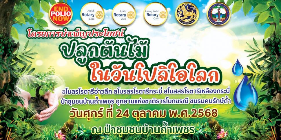 29 ตุลาคม 2568 เวชา 8.30-12.00 น. สโมสรโรตารีเหลืองกระบี่ นำโดยนายก ดร.สุดารัตน์ แก้วเก้า พร้อมสมาชิก ร่วมกับสโมสรโรตารีอ่าวลึกและสโมสรโรตารีกระบี่ ร่วมกันปลูกป่า เพื่อให้ชุมชนรับรู้และตระหนักถึงวันโปลิโอโลก 23 ตุลาคม ของทุกปี สโมสรโรตารีในจังหวัดกระบี่ ทั้ง 3 สโมสร จะหมุนเวียนกันเป็นเจ้าภาพ ปีนี้ สโมสรโรตารีอ่าวลึก เป็นเจ้าภาพในการจัดการ ปลูกต้นไม้ ณ ป่าชุมชนบ้านถ้ำเพ็ชร อุทยานแห่งชาติธารโบกขรณี อำเภออ่าวลึก จังหวัดกระบี่ค่ะ