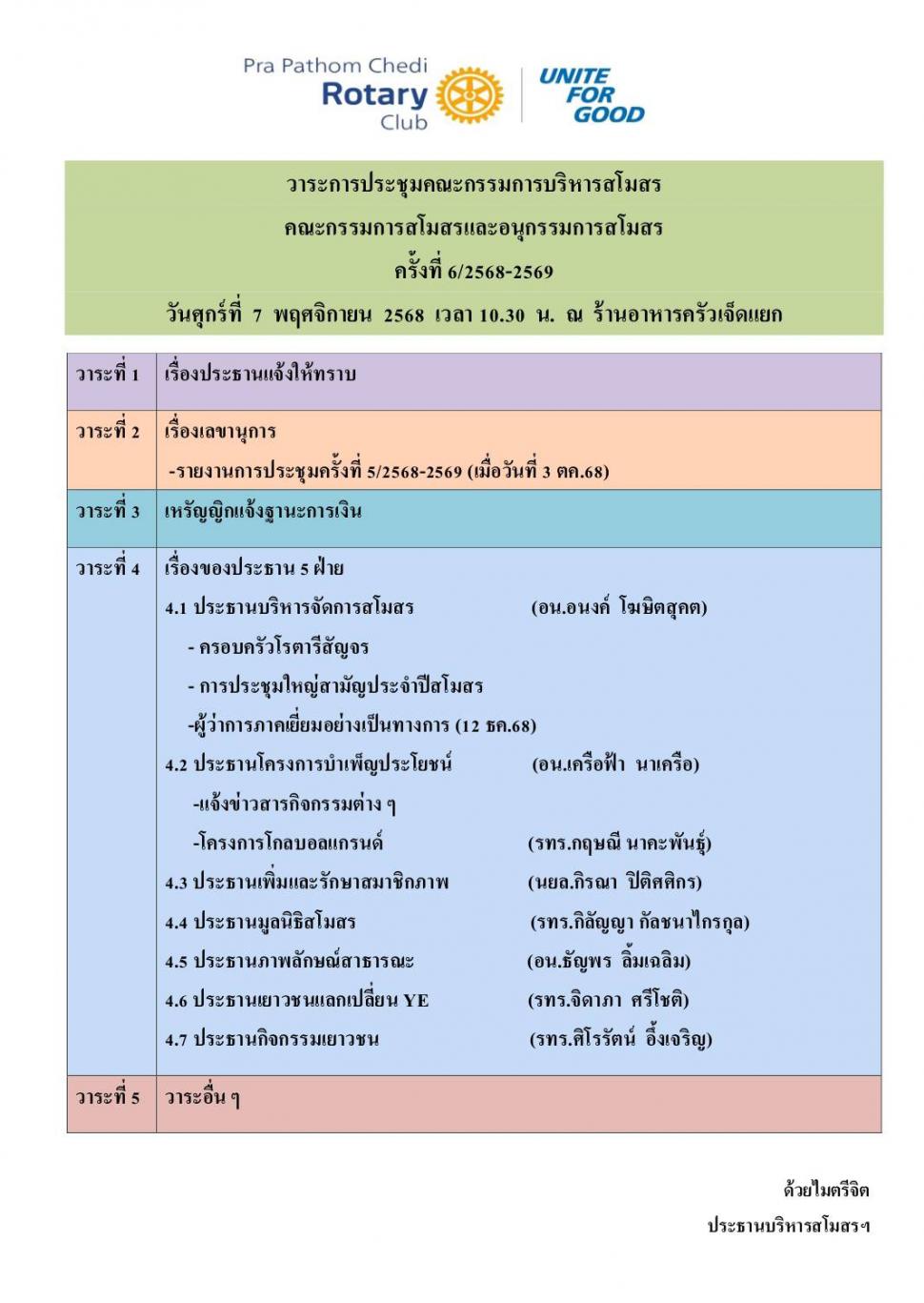 เพื่อพิจารณาการจัดกิจกรรมและโครงการต่าง ๆ พร้อมเตรียมต้อนรับผู้ว่าการภาคเยี่ยมสโมสรอย่างเป็นทางการ