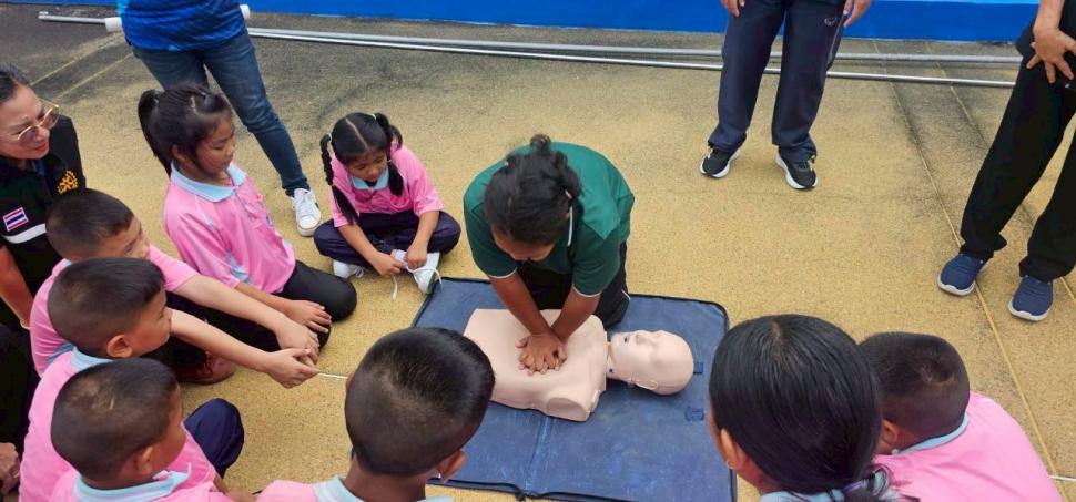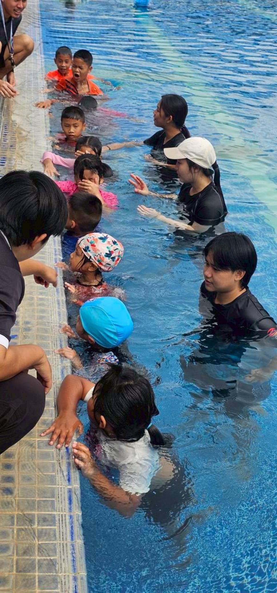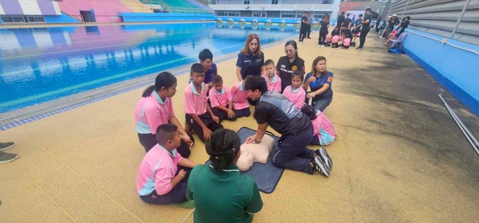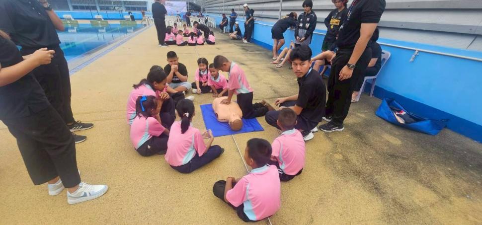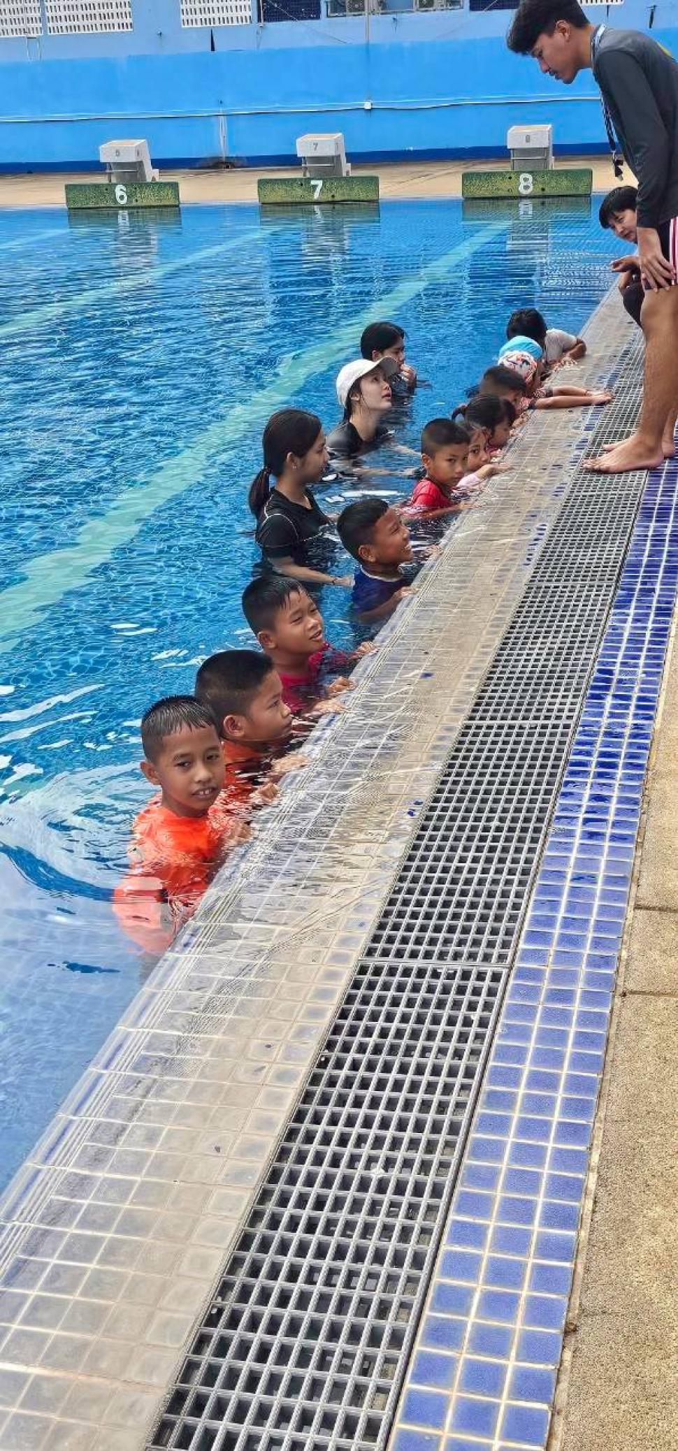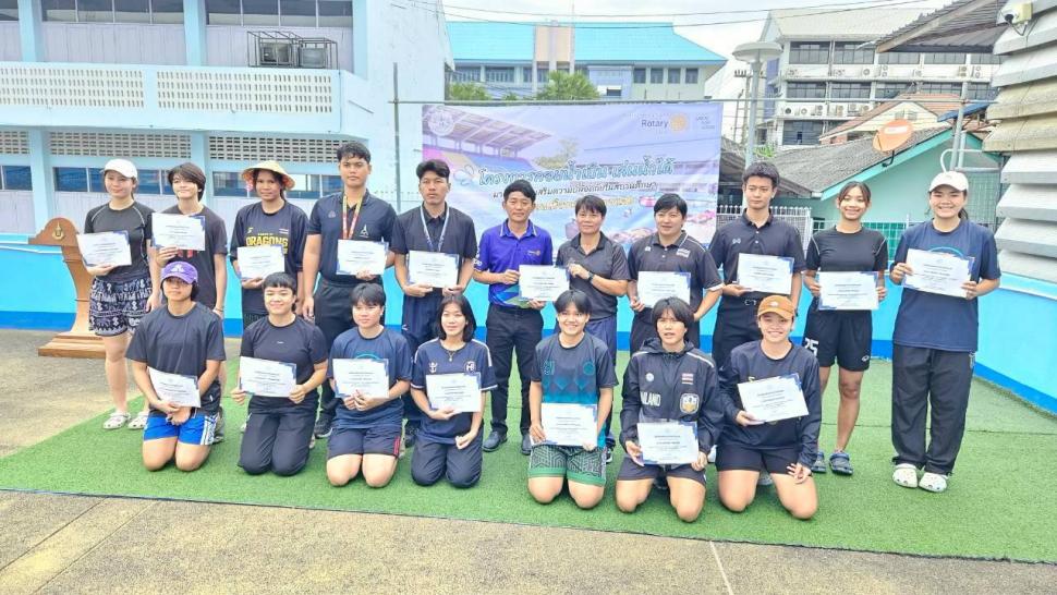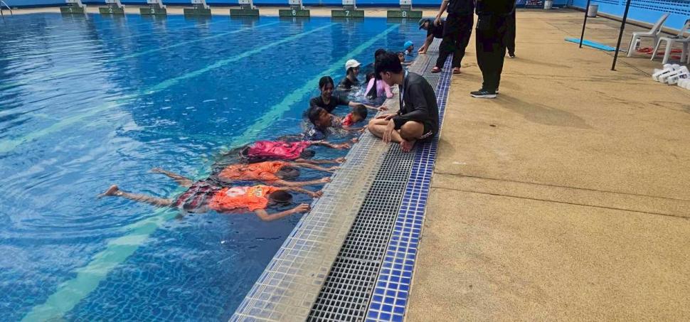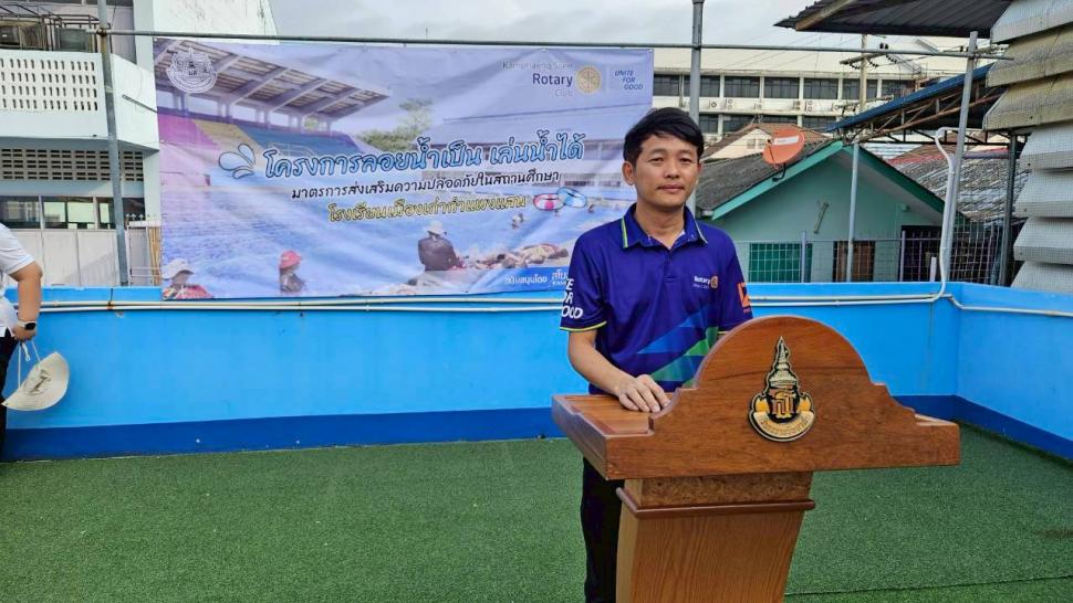 สโมสรโรตารีกำแพงแสน ร่วมกับโรงเรียนเมืองเก่ากำแพงแสน จัดโครงการอบรมเชิงปฎิบัติการ “ลอยน้ำเป็น เล่นน้ำได้” ในวันเสาร์ที่ 8 พฤศจิกายน 2568 ณ สระว่ายน้ำ โรงเรียนสิรินธรราชวิทยาลัย อำเภอเมือง จังหวัดนครปฐม เพื่อเป็นการดำเนินการตามเป้าหมายของภาค 3330 โรตารีสากลและดำเนินงานตามแผนงานของสโมสรโรตารีกำแพงแสน ในโครงการด้านบำเพ็ญประโยชน์ โดยส่งเสริมด้านความปลอดภัยในชีวิตและทรัพย์สินของคนในชุมชน และเป็นนโยบายในระดับชาติ ที่จะช่วยลดความสูญเสียโดยเฉพาะ “การเอาชีวิตรอดจากการประสบเหตุทางน้ำ”ของเด็กๆในวัยเรียน ให้สามารถช่วยเหลือตนเอง และมีพื้นฐานการว่ายน้ำเป็น โดยมีน้กเรียนเข้าร่วมโครงการทั้งสิ้น 35 คน
