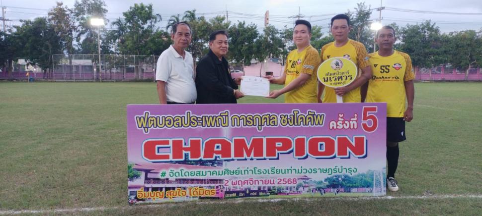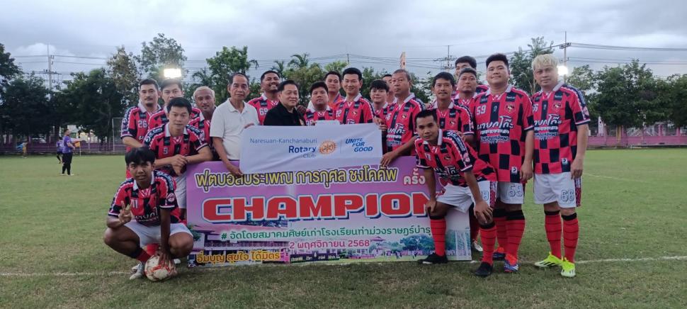 นย.สะอาด ทั่นเส้ง นายกสโมสรโรตารีนเรศวร-กาญจนบุรี สนับสนุน แข่งขันฟุตบอลการกุศลเพื่อส่งเสริมการพัฒนาโรงเรียนท่าม่วงราษฎร์บำรุง แข่งขันฟุตบอลการกุศลเพื่อส่งเสริมการพัฒนาโรงเรียนท่าม่วงราษฎร์บำรุง เมื่อวันอาทิตย์ที่ 2 พฤศจิกายน 2568