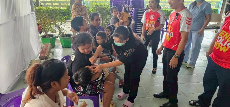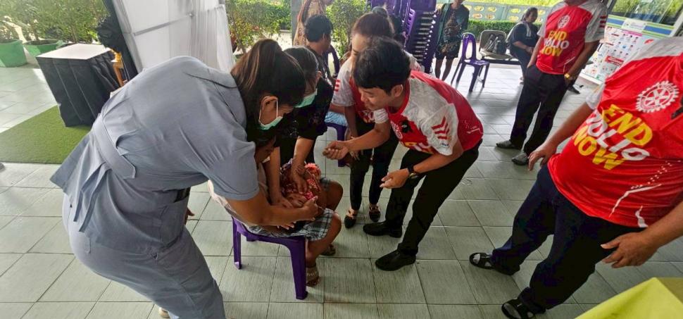 สโมสรโรตารีกำแพงแสน โดย นย.นพดล นาคมี พร้อมด้วยสมาชิกสโมสรโรตารีกำแพงแสน ร่วมรณรงค์หยอดวัคซีนป้องกันโรคโปลิโอ ณ โรงพยาบาลส่งเสริมสุขภาพตำบลวังน้ำเขียว อำเภอกำแพงแสน จังหวัดนครปฐม เมื่อวันที่ 10 พฤศจิกายน 2568