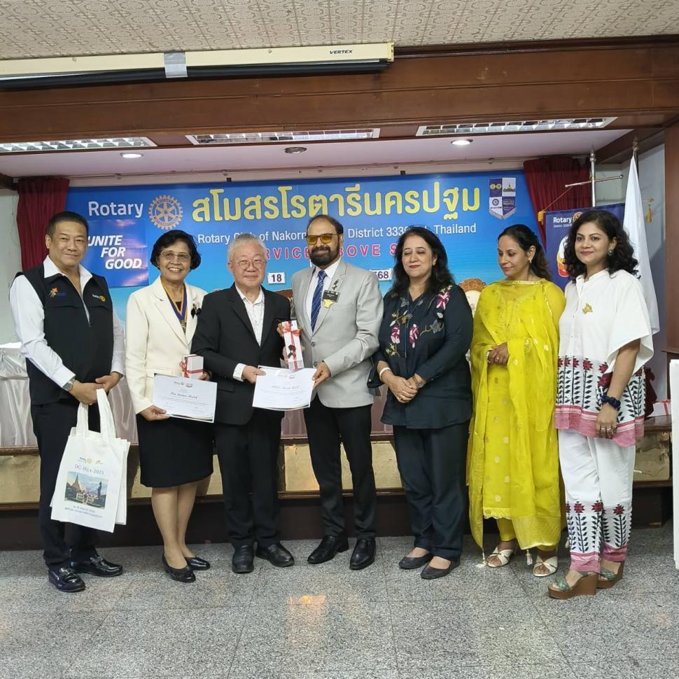 นอกจากนี้ สโมสรยังได้ให้การ ต้อนรับคณะ Rotary Friendship Exchange (RFE) จาก ภาค 3040 ประเทศอินเดีย ซึ่งได้เดินทางมาเยี่ยมเยียนและแลกเปลี่ยนวัฒนธรรมกับสมาชิกสโมสรโรตารีนครปฐม เป็นอีกหนึ่งโอกาสอันดีในการสร้างมิตรภาพระหว่างประเทศและแลกเปลี่ยนประสบการณ์การทำงานบริการในแบบโรตารี
