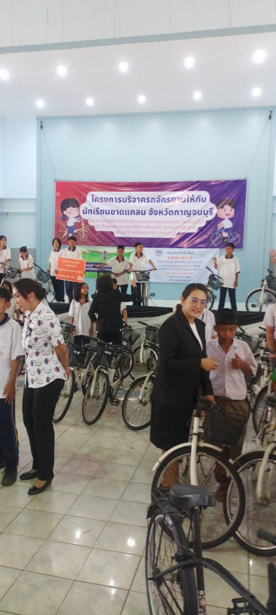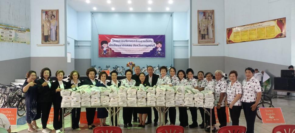 นย. สะอาด ทั่นเส้ง นายกสโมสรโรตารีนเรศวร-กาญจนบุรี ร่วมโครงการบริจาครถจักรยาน ให้กับนักเรียนขาดแคลนจังหวัดกาญจนบุรี โรงเรียนร่มเกล้ากาญจนบุรี และโรงเรียนในพื้นที่บริการทั้ง 7 แห่ง จำนวน 150 คัน โดยสมาคมสตรีสัมพันธ์ กทม. มูลนิธิโรงเรียนร่มเกล้า อ. ทองผาภูมิ จ.กาญจนบุรี เมื่อวันที่ 13 พฤศจิกายน 2568
