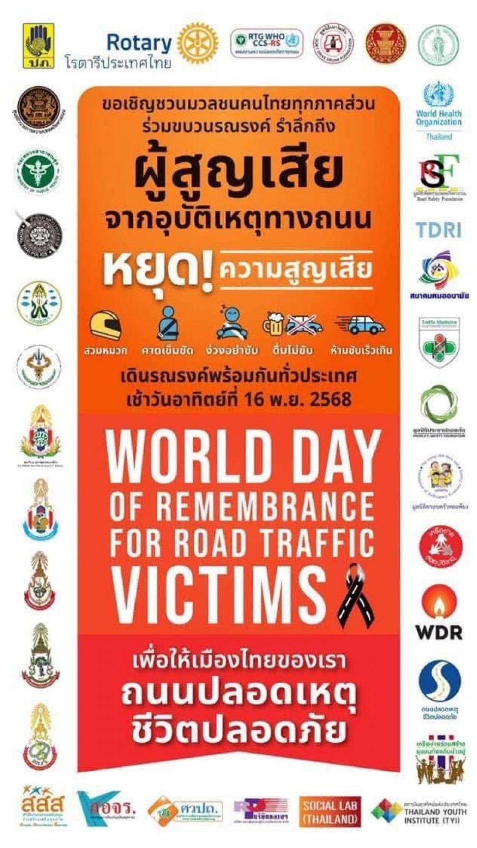 "ถนนปลอดเหตุ ชีวิตปลอดภัย" จังหวัดนครปฐม(SAFE ROADS SAVE LIVES) (SRSL) วันรำลึกถึงผู้สูญเสียจากอุบัติเหตุทางถนน ประจำปี 2568 พร้อมมอบหมวกกันน๊อครวมทั้งภาค จำนวน 1,000,000 ใบ เด็กปลอดภัย1ล้านคน