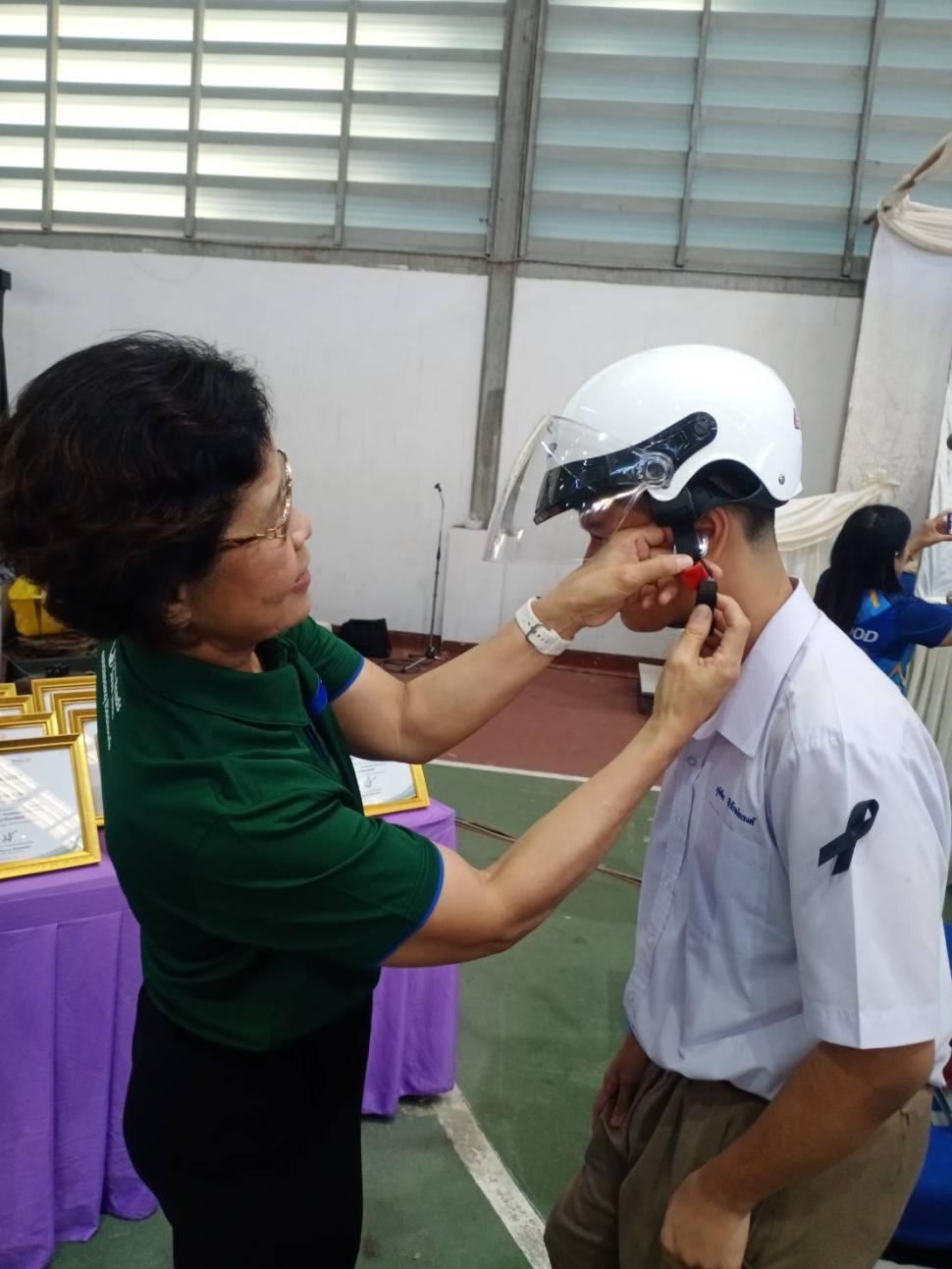 ✅ มอบและสวมหมวกกันน็อคให้กับนักเรียนและประชาชน