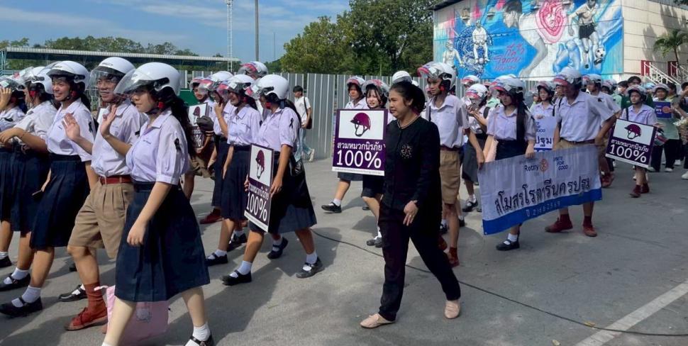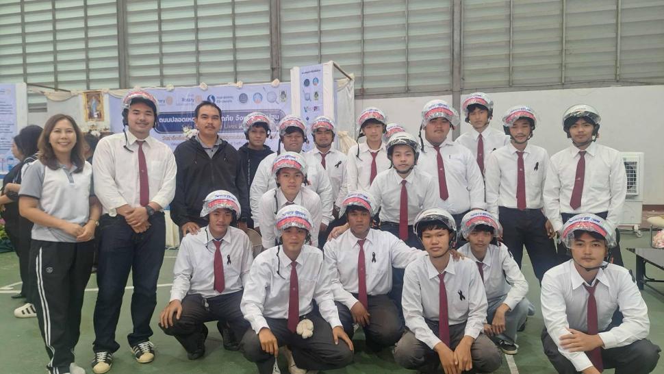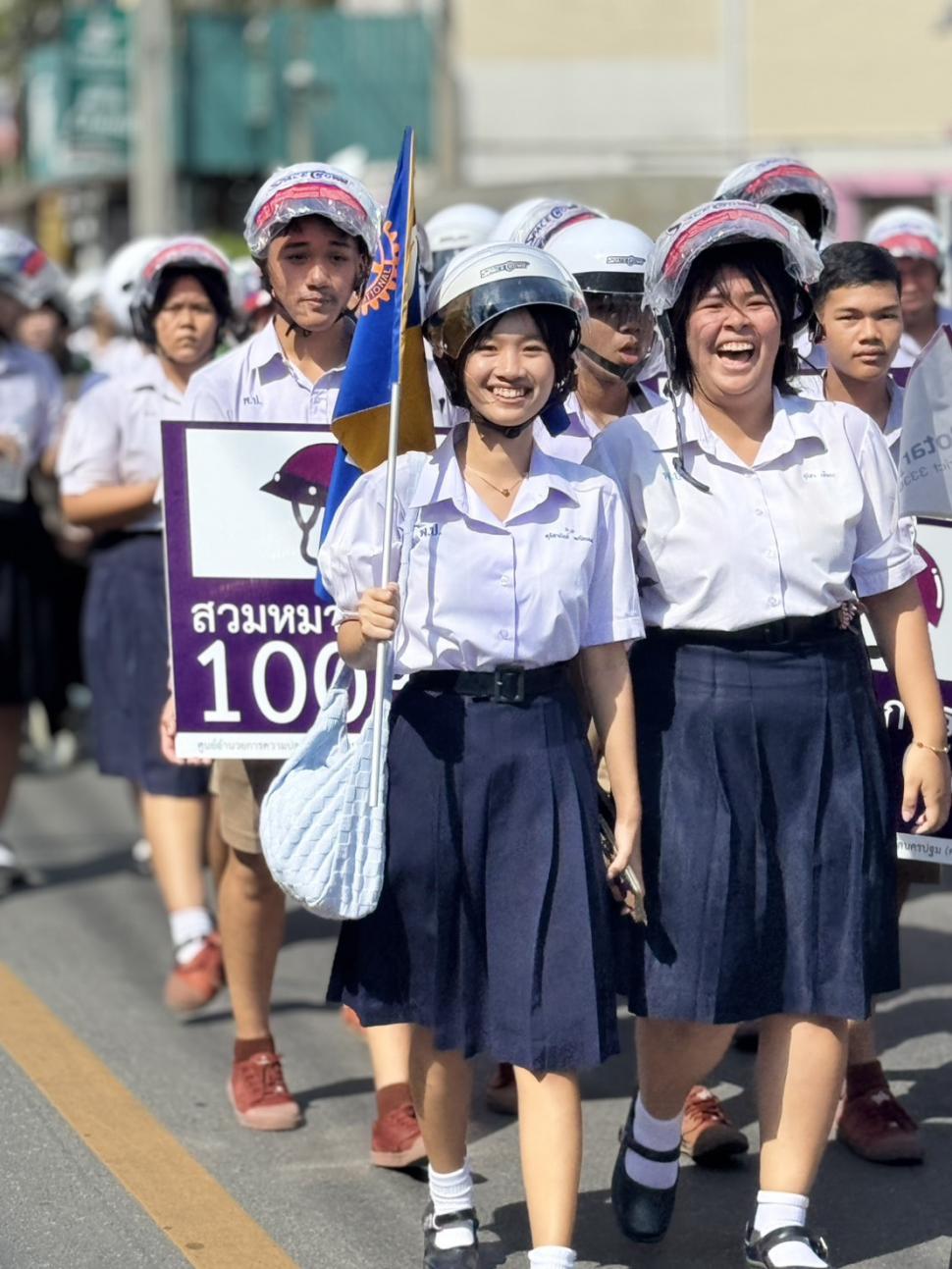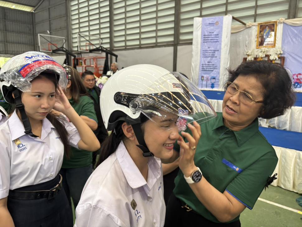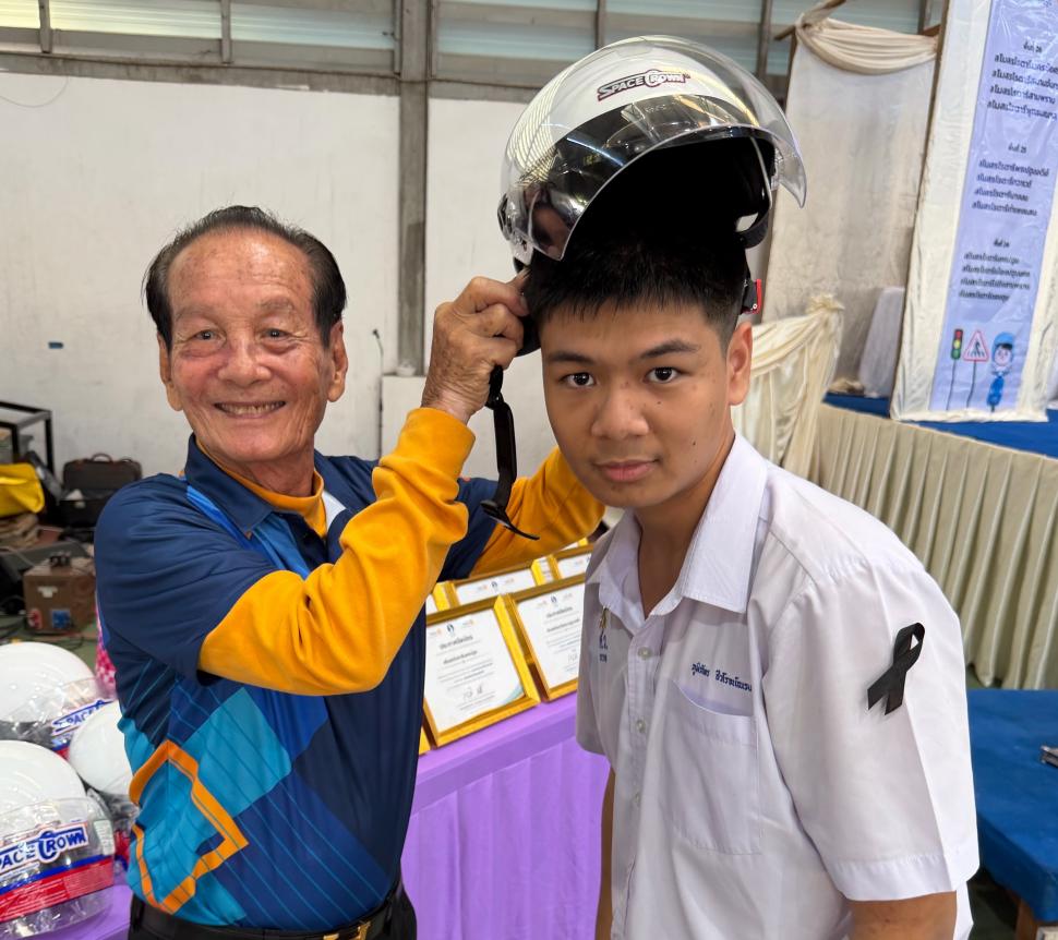 ✅ มอบและสวมหมวกกันน็อคให้กับนักเรียนและประชาชน