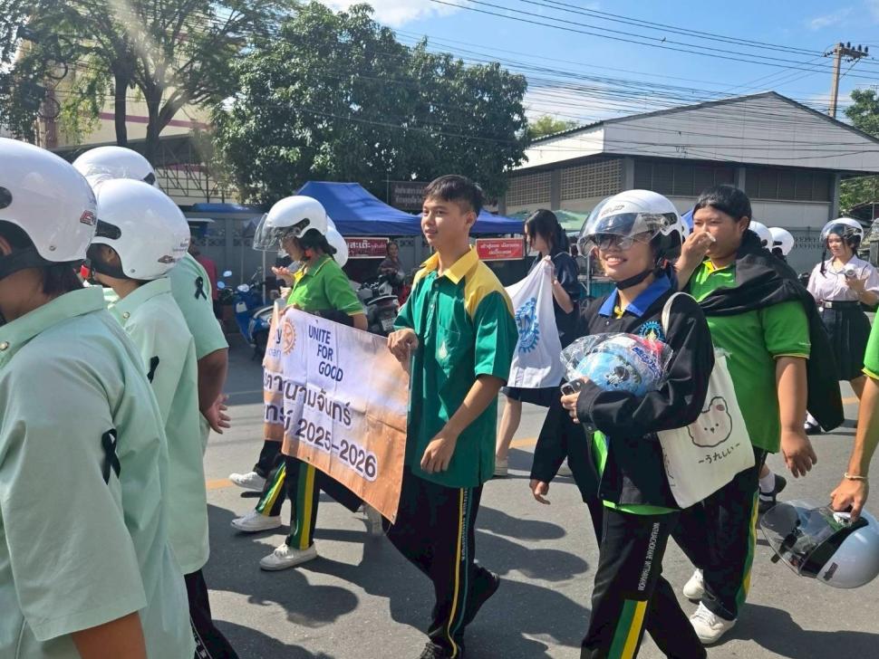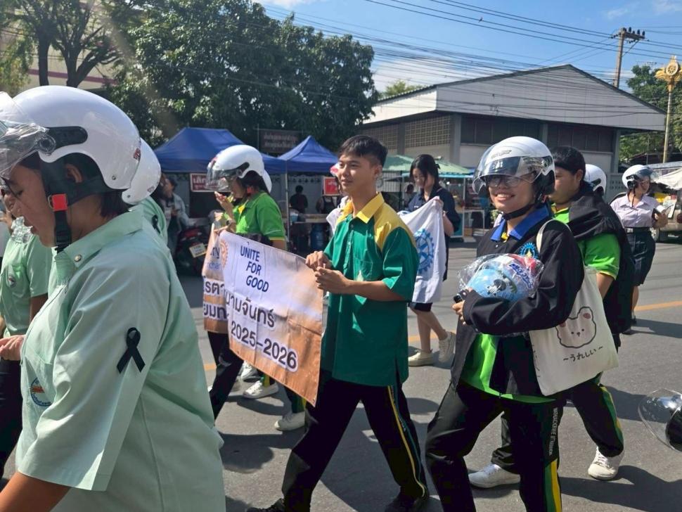 สโมสรโรตารีสนามจันทร์ นำโดย นายกสุกิจ นิยมทรัพย์ พร้อมสมาชิก ร่วมกิจกรรม ถนนปลอดเหตุ ชีวิตปลอดภัย Save Roads Save Lives ซึ่งร่วมจัดกับสโมสรโรตารีในจังหวัดนครปฐมอีก 11 สโมสร โดยมีการบรรยายพิเศษให้ความรู้วินัยบนท้องถนน มอบหมวกนิรภัยแก่นักเรียนที่เข้าร่วม และเดินขบวนรณรงค์สวมหมวกนิรภัย 100%