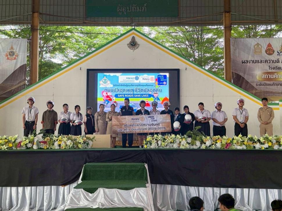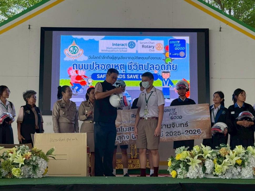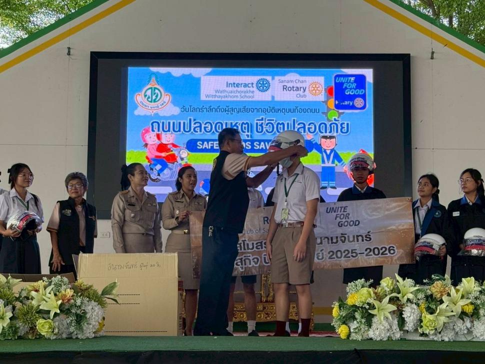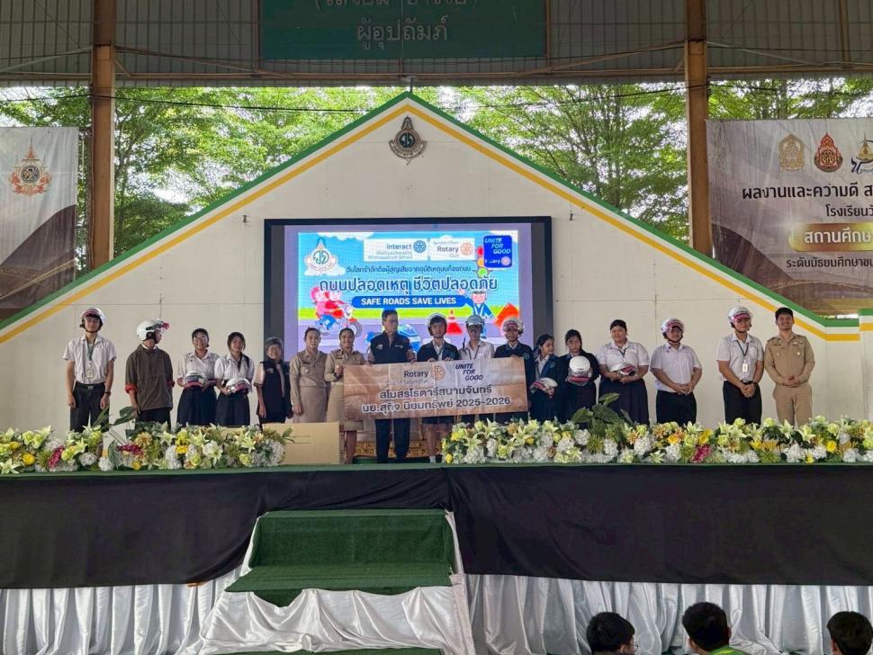 วันที่ 17 พฤศจิกายน 2568 ณ โรงเรียนวัดห้วยจรเข้วิทยาคม สโมสรโรตารีสนามจันทร์ โดย นายกสุกิจ นิยมทรัพย์ และอน.อัญชลี อมรสิน ดำเนินการมอบหมวกนิรภัยแก่นักเรียนโรงเรียนวัดห้วยจรเข้วิทยาคม เพื่อส่งเสริมความปลอดภัยให้กับเยาวชน