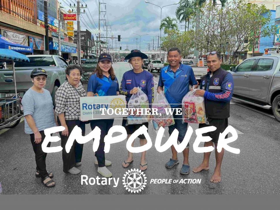 นที่ 23 พฤศจิกายน 2568 สโมสรโรตารีช่อศรีตรัง นำโดยท่านนายกกิตติ์ชญาน์ ธนินเกียรติขจร ประธานบำเพ็ญประโยชน์ อน. อรวรรณ บันลือศรีสกุล และสมาชิกโรทาเรียน แพคถุงยังชีพ จำนวน 100 ถุง ออกแจกให้กับประชาชนผู้ประสบภัยน้ำท่วม พื้นที่ลุ่ม อำเภอเมือง อำเภอย่านตาขาว จังหวัดตรัง จำนวน 70 กว่าครัวเรือน
