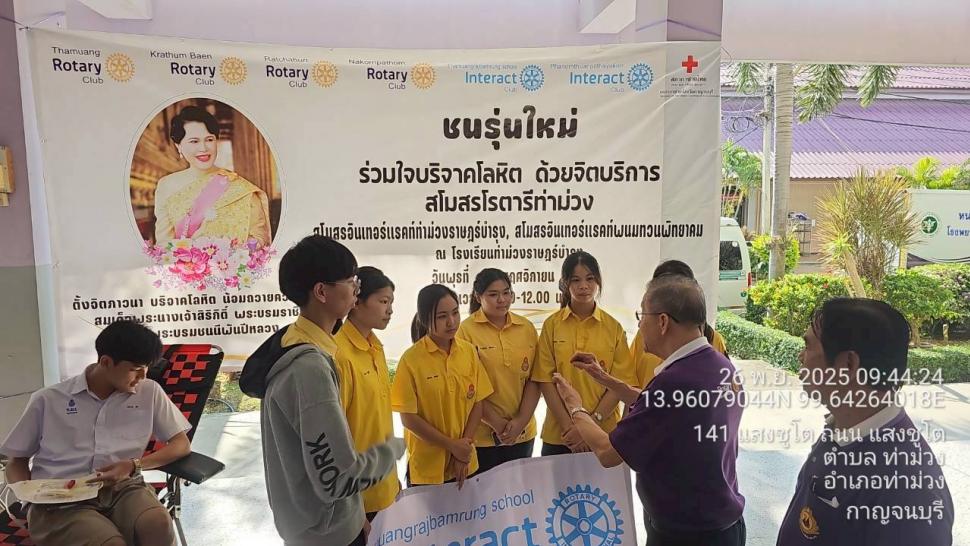 ชนรุ่นใหม่ ร่วมใจบริจาคโลหิต ด้วยจิตบริการ สโมสรอินเทอร์แร็คท์โรงเรียนท่าม่วงราษฎร์บำรุง & สโมสรอินเทอร์แร็คท์โรงเรียนพนมทวนพิทยาคม