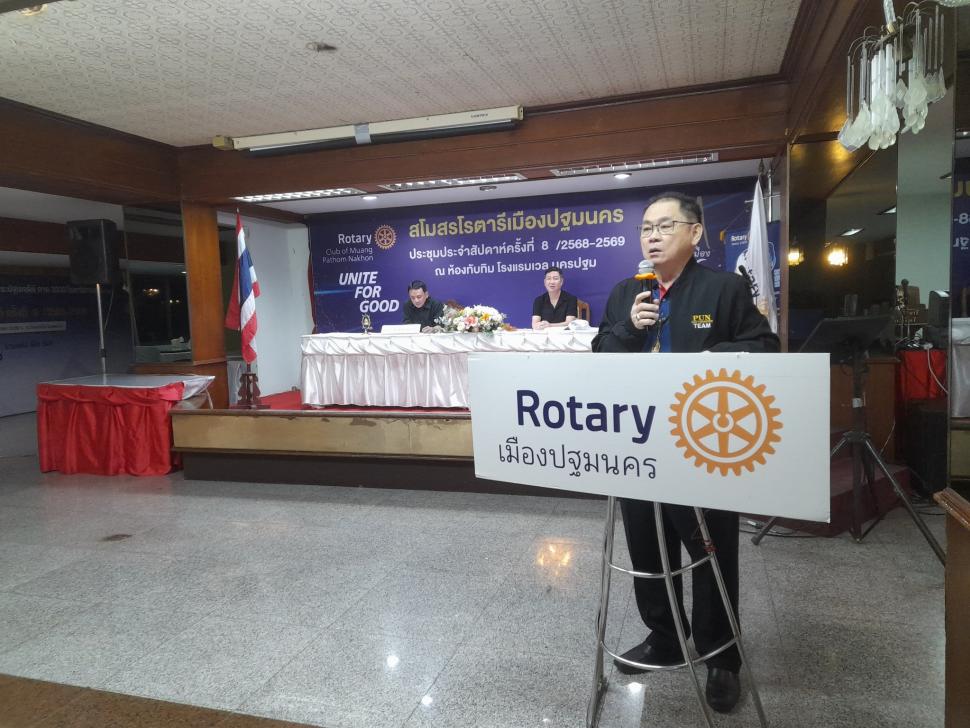 .. สโมสรโรตารีเมืองปฐมนคร ประชุมปกติประจำสัปดาห์ ครั้งที่ 8 พร้อมทั้งวันครอบครัว ปี 2568-2569 .. สโมสรโรตารีเมืองปฐมนคร ประชุมปกติประจำสัปดาห์ ครั้งที่ 8 พร้อมทั้งวันครอบครัว ปี 2568-2569 และการหารือเพื่อช่วยเหลือกิจกรรมหลังน้ำลดในพื้นที่ภาคใต้ เมื่อวันที่ 27 พฤศจิกายน 2568 ณ ห้องทับทิม โรงแรมเวล นครปฐมเมื่อวันที่ 27 พฤศจิกายน 2568 ณ ห้องทับทิม โรงแรมเวล นครปฐม