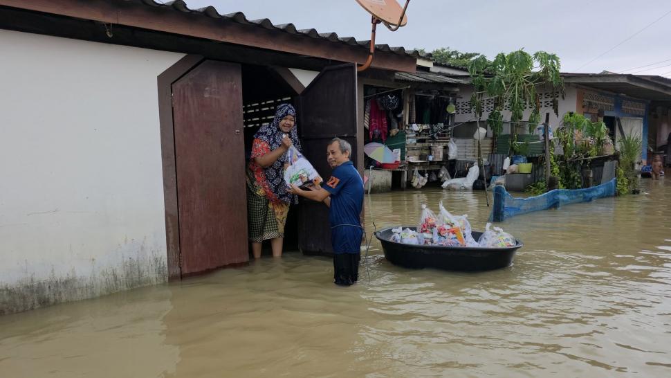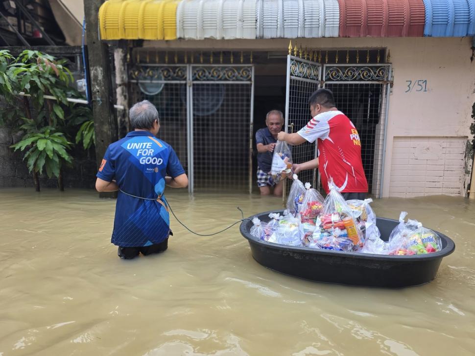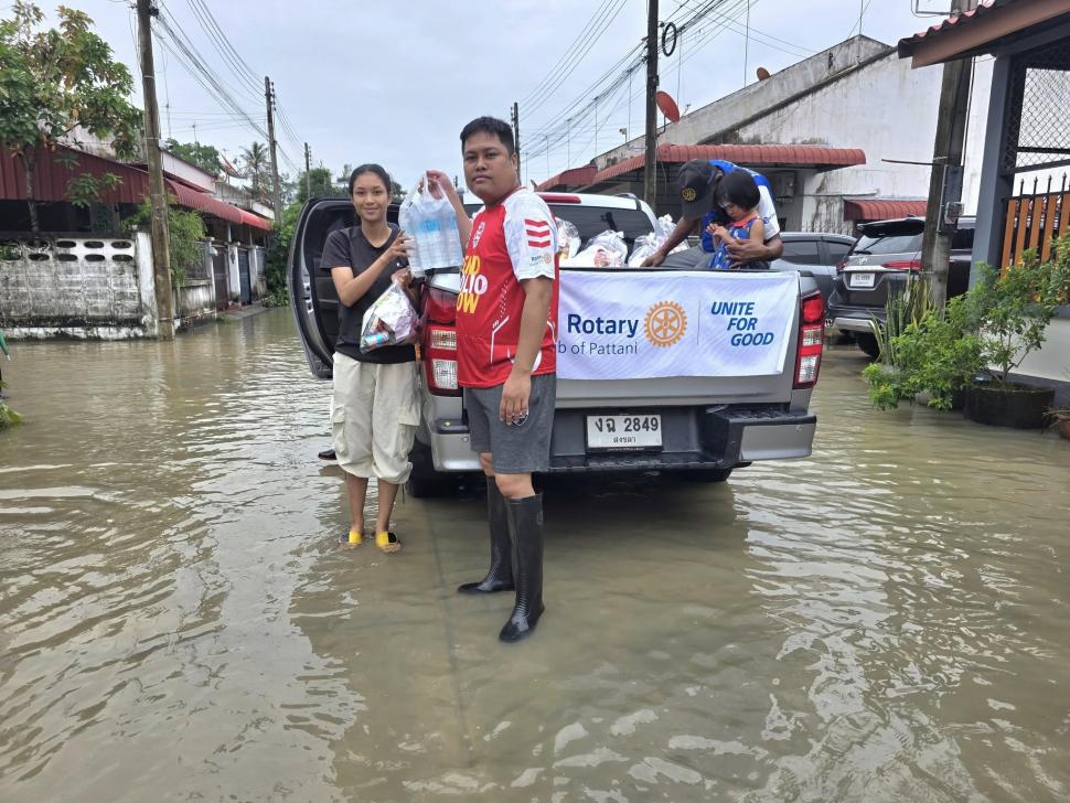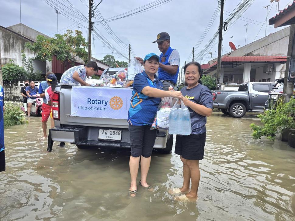 วันที่ 28 พฤศจิกายน 2568 เวลา 14:00น. ณ หมู่บ้านพระยาเมือง นายกมล ผ่องใส นายกสโมสรโรตารีปัตตานี และสมาชิกสโมสรโรตารีปัตตานี ร่วมทำกิจกรรมบำเพ็ญประโยชน์ มอบถุงยังชีพเพื่อบรรเทาความเดือดร้อนแก่ผู้ประสบภัยน้ำท่วมหมู่บ้านพระยาเมือง