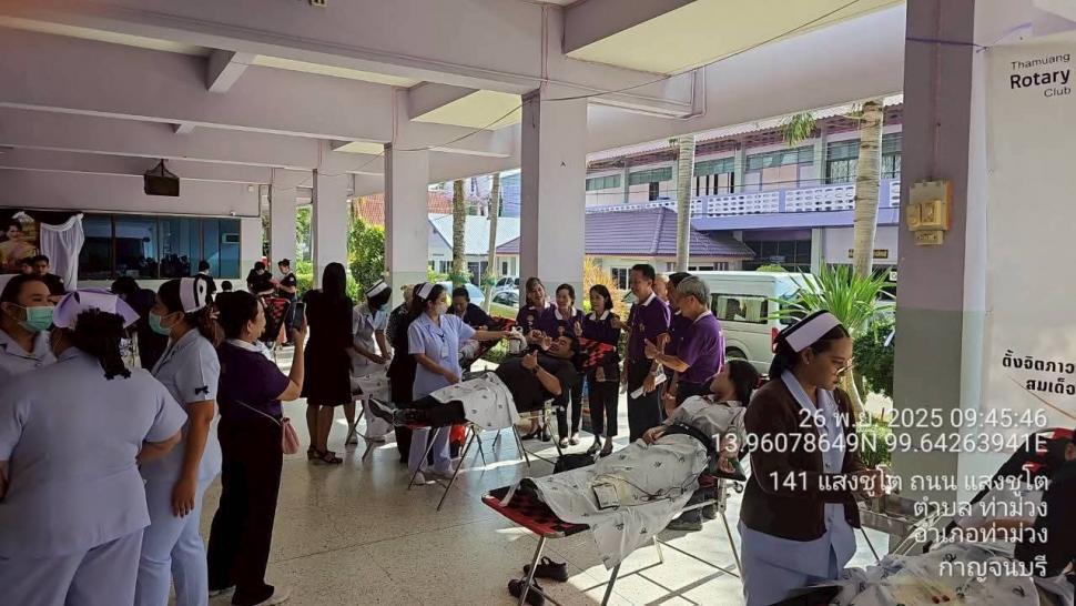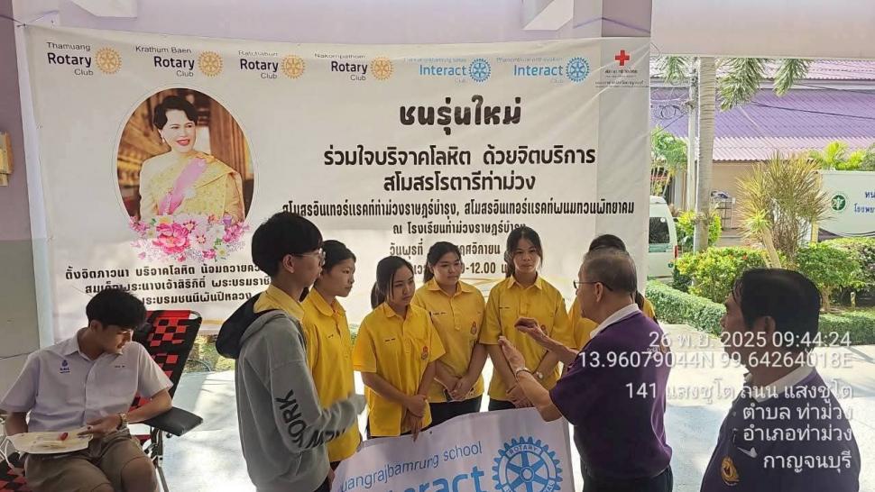 ชนรุ่นใหม่ ร่วมใจบริจาคโลหิต ด้วยจิตบริการ สโมสรอินเทอร์แร็คท์โรงเรียนท่าม่วงราษฎร์บำรุงและสโมสรอินเทอร์แร็คท์โรงเรียนพนมทวนพิทยาคม