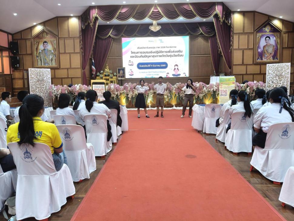 วันที่ 11 ธันวาคม 2568 สโมสรโรตารีนครปฐม ได้จัดโครงการ อบรมเชิงปฏิบัติการเพื่อส่งเสริมและป้องกันปัญหาสุขภาพจิตวัยรุ่นวัยเรียน ณ หอประชุม 100 ปี โรงเรียนราชินีบูรณะ อำเภอเมือง จังหวัดนครปฐม